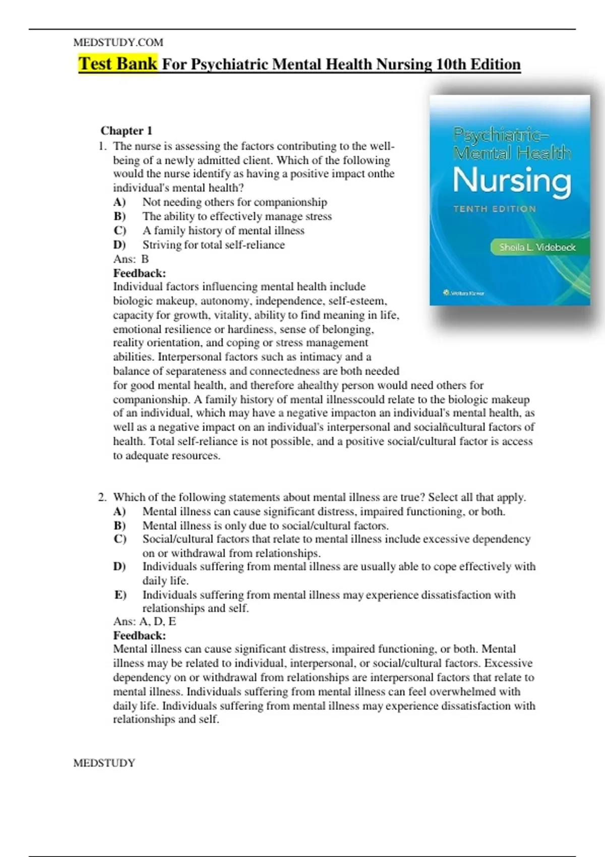 Test Bank For Psychiatric Mental Health Nursing 10th Edition