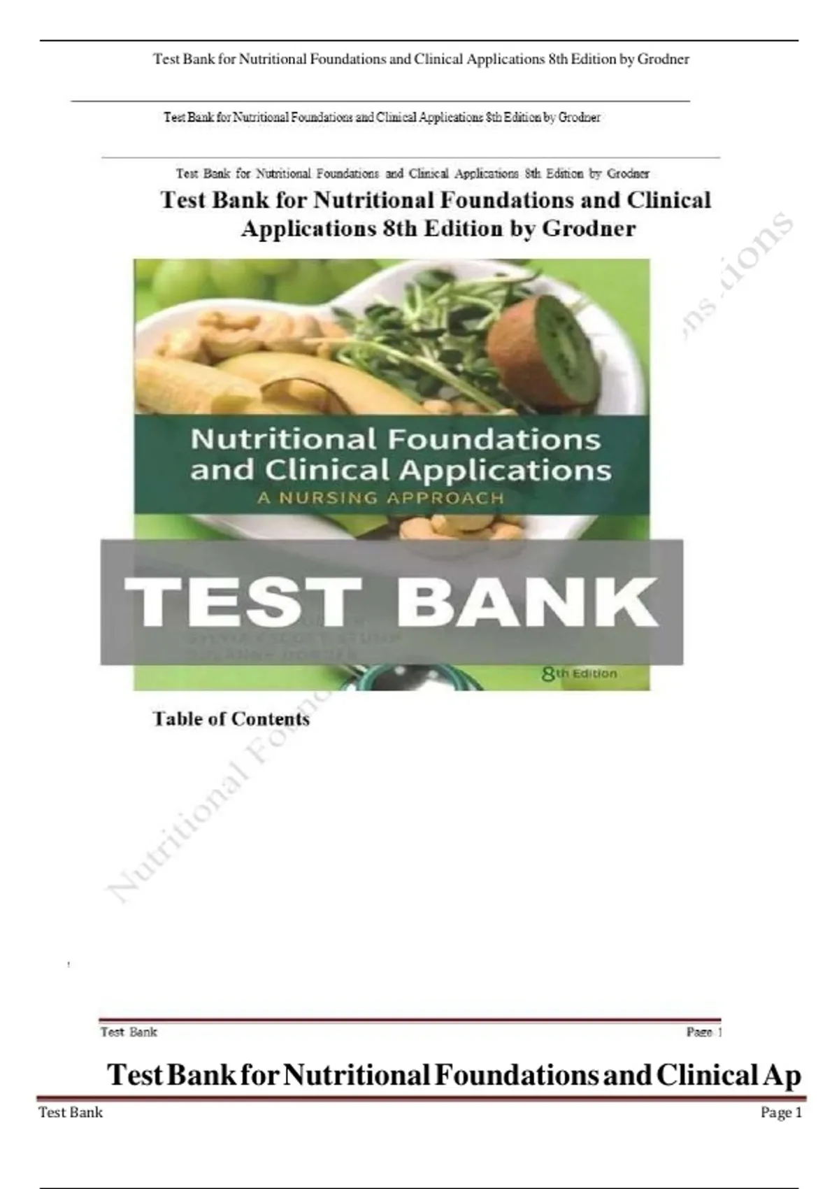 , Test Bank for Nutritional Foundations and Clinical Applications 8th Edition by Grodner