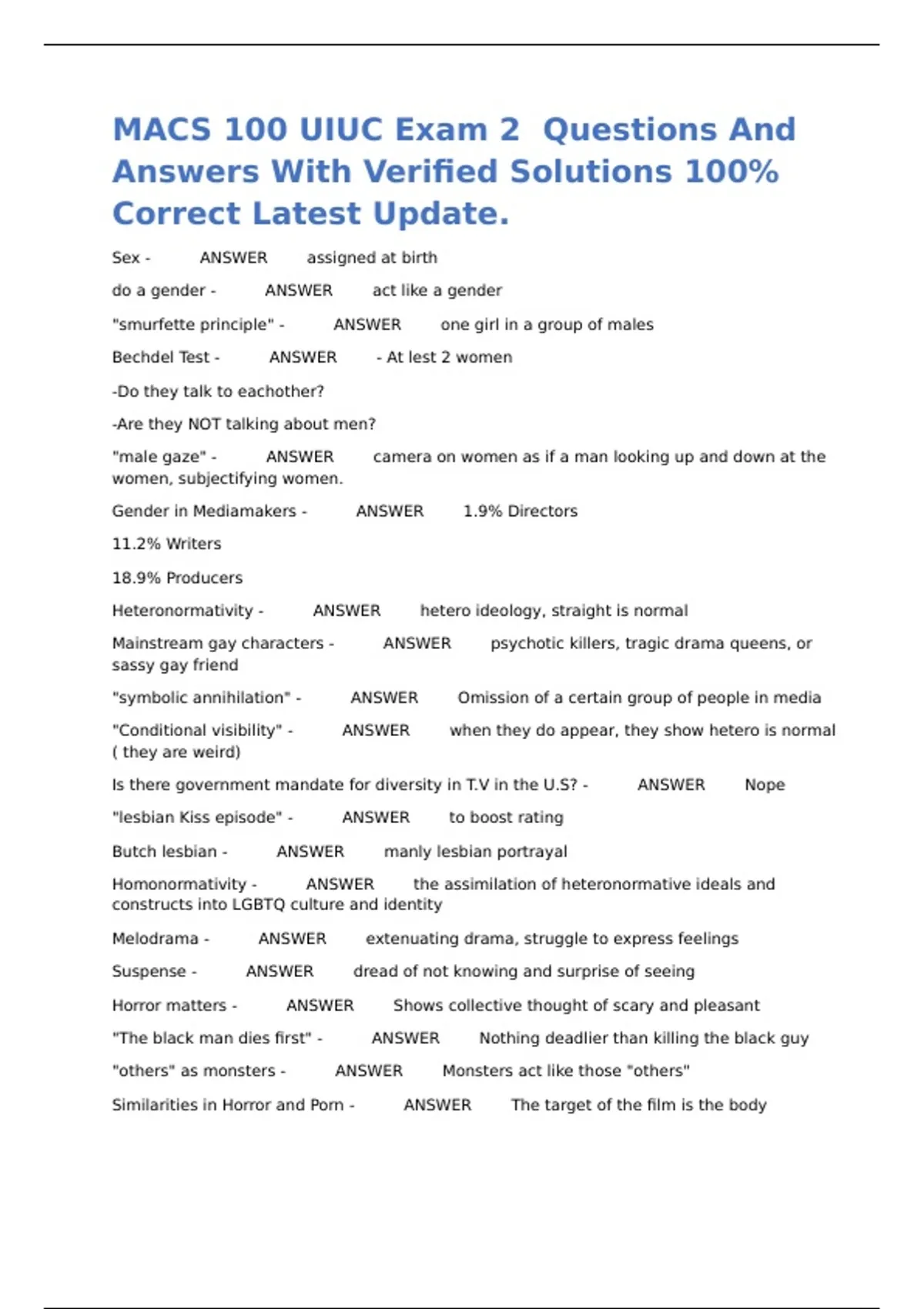 MACS 100 UIUC Exam 2 Questions And Answers With Verified Solutions 100% Correct Latest Update.