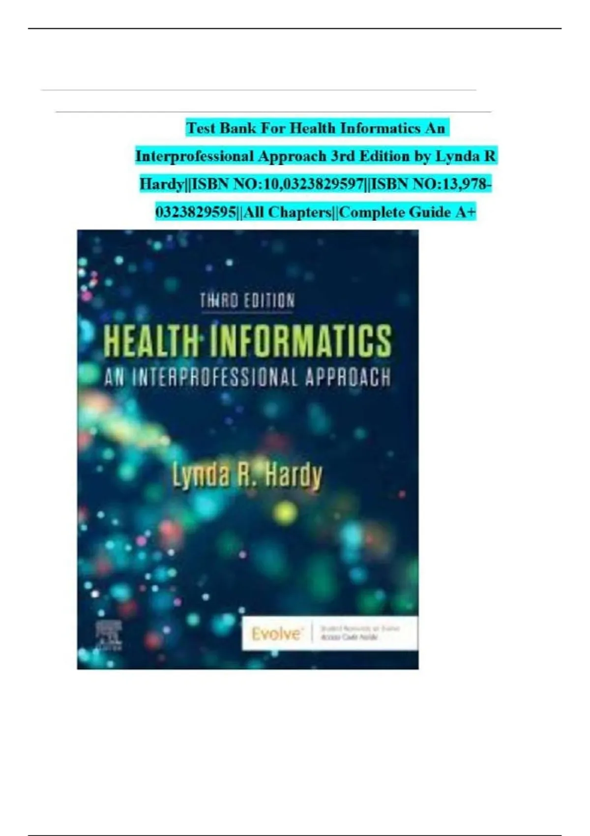 Test Bank For Health Informatics An Interprofessional Approach 3rd Edition by Lynda R Hardy All Chapters ||Complete A+ Guide