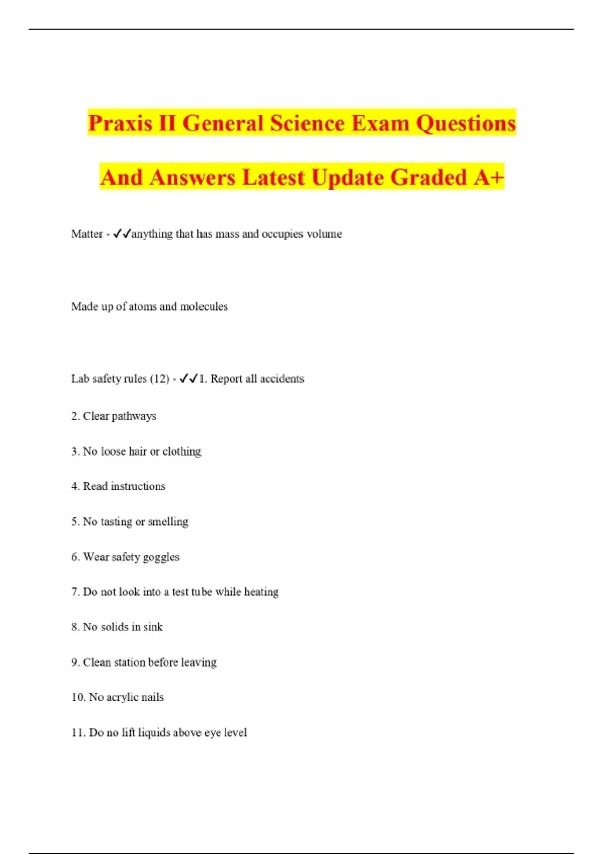 Praxis II General Science Exam Questions And Answers Latest Update Graded A+