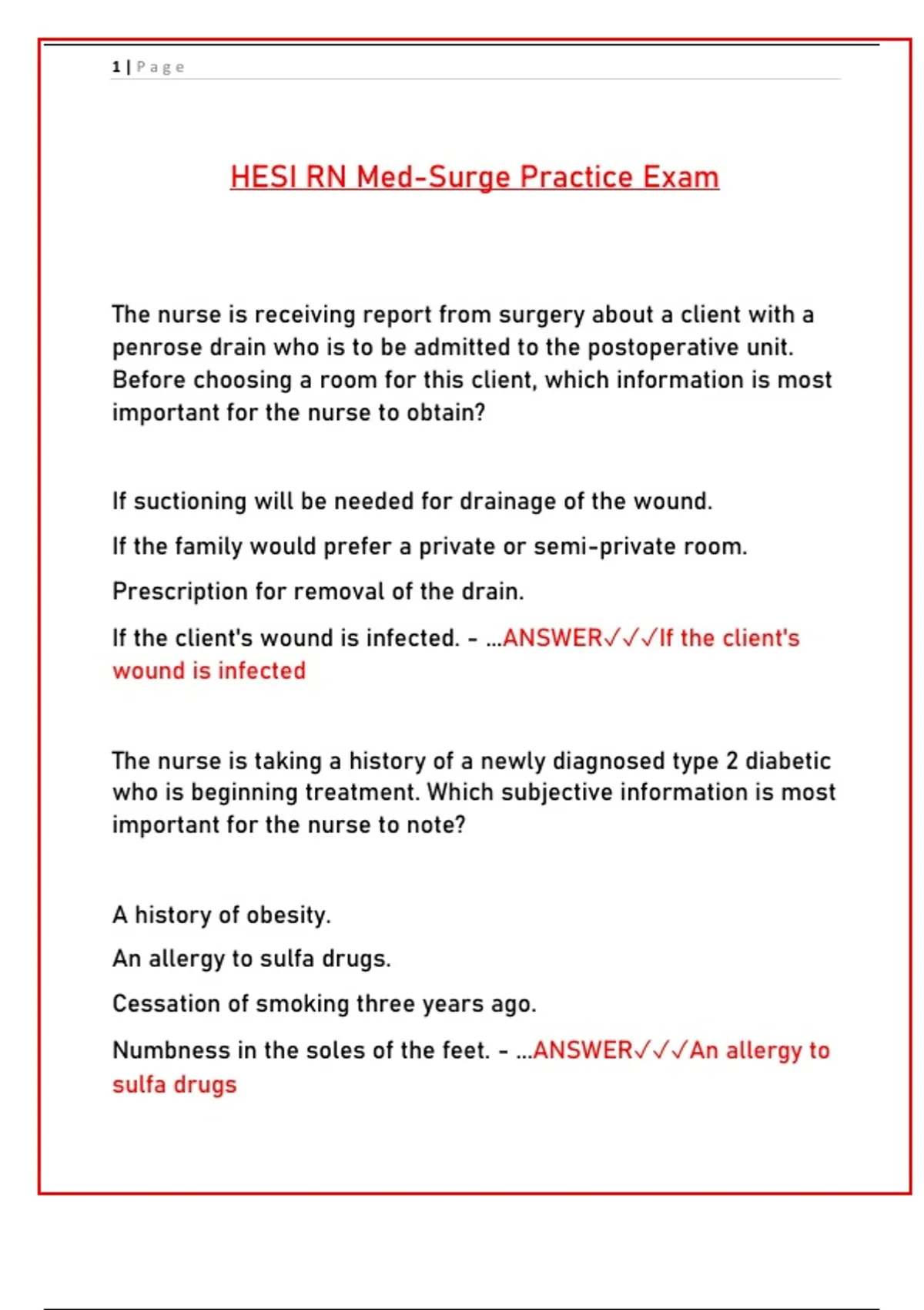 HESI RN Med-Surge Practice Exam Questions & Answers | Nursing Study Guide