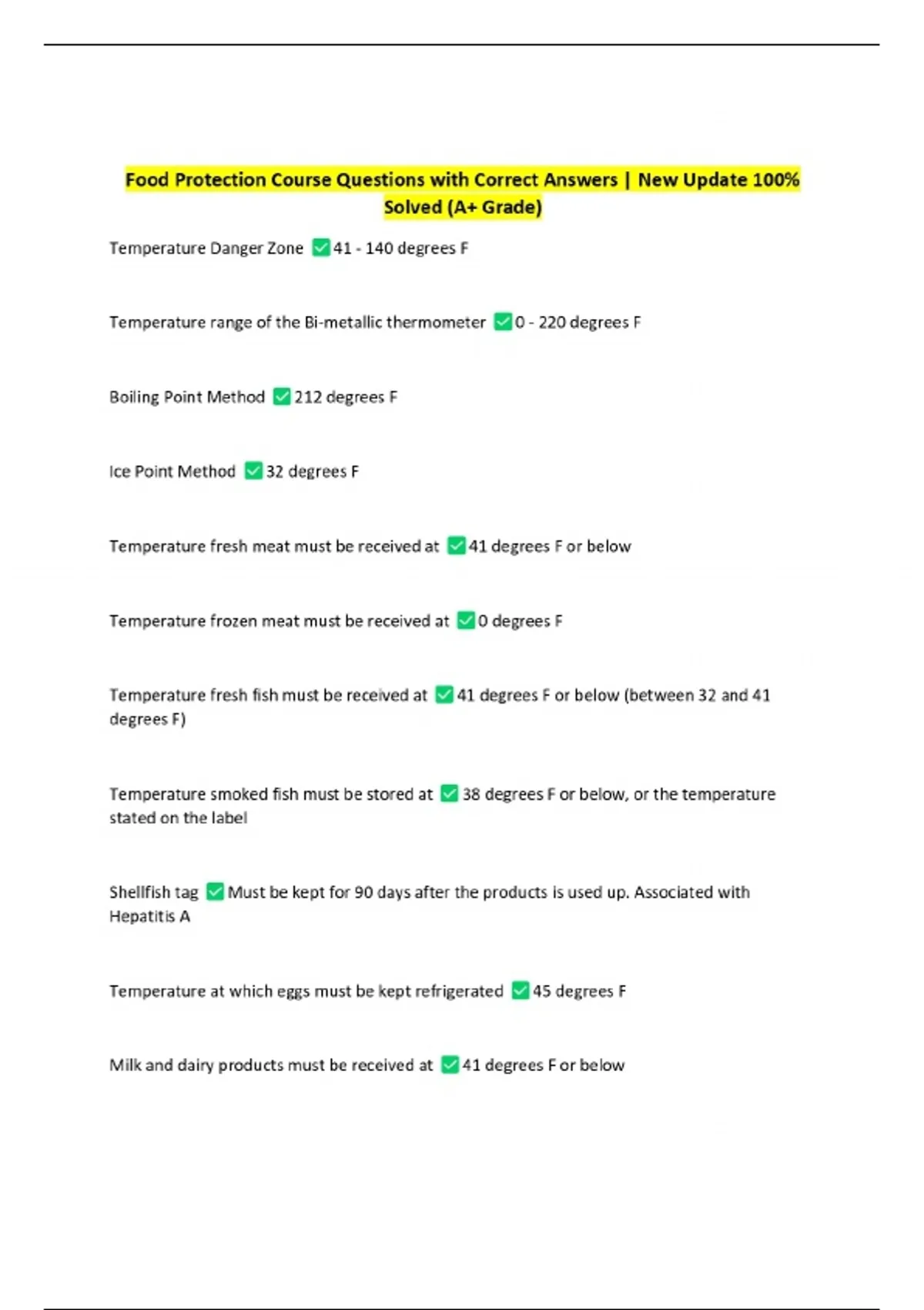 Food Protection Course Questions with Correct Answers | New Update 100% Solved (A+ Grade)