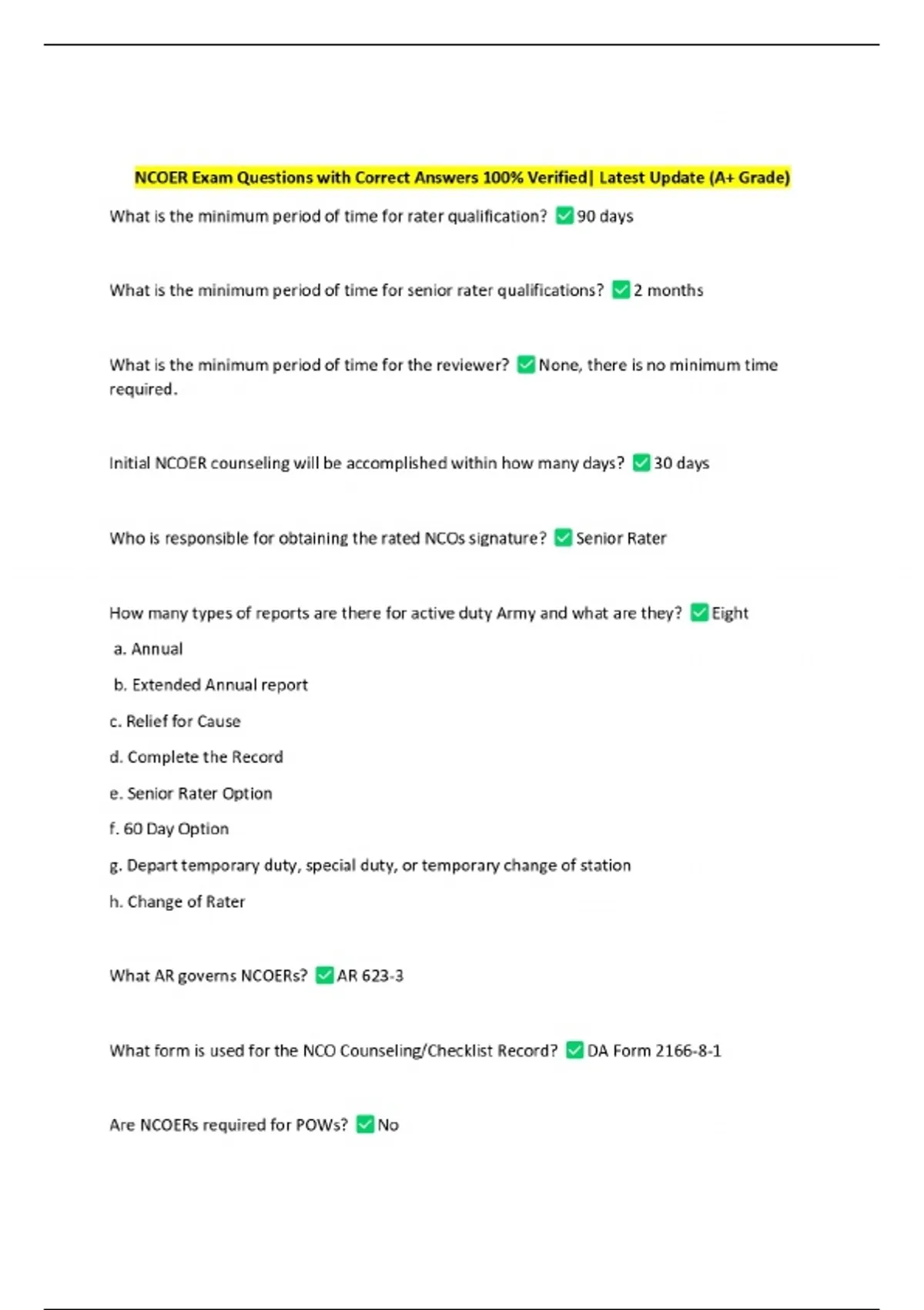 NCOER Exam Questions with Correct Answers 100% Verified| Latest Update (A+ Grade)