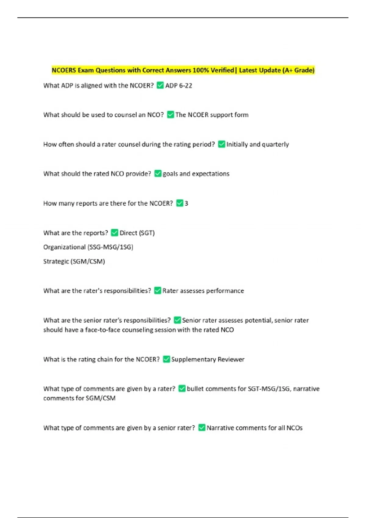 NCOERS Exam Questions with Correct Answers 100% Verified| Latest Update (A+ Grade)