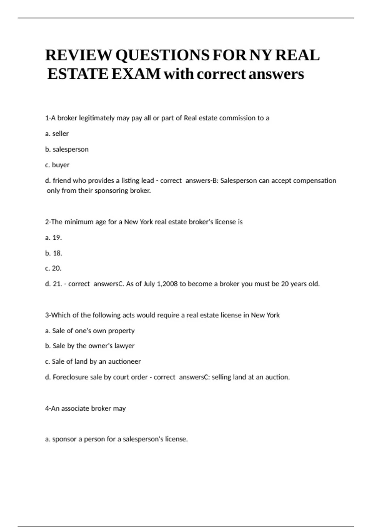 REVIEW QUESTIONS FOR NY REAL ESTATE EXAM with correct answers