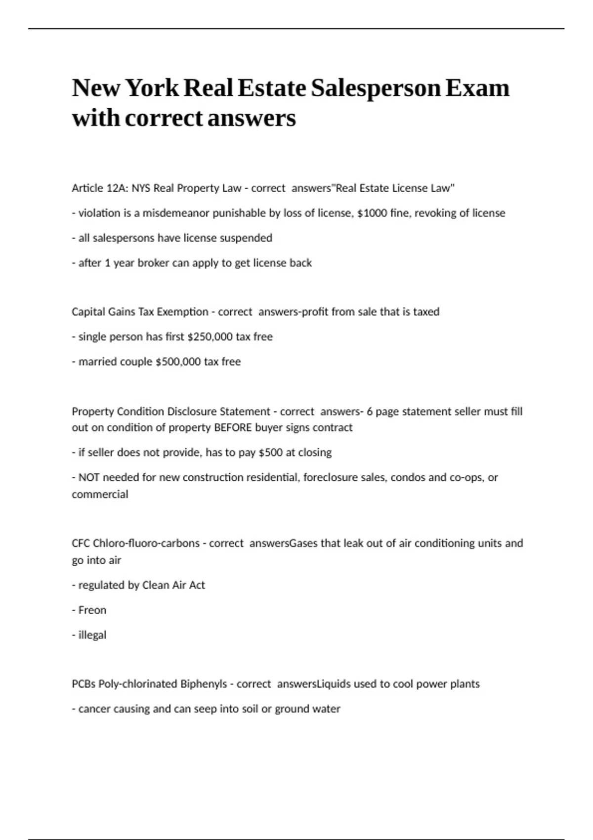 NY Real Estate State Exam (Mult Choice) exam with correct answers...