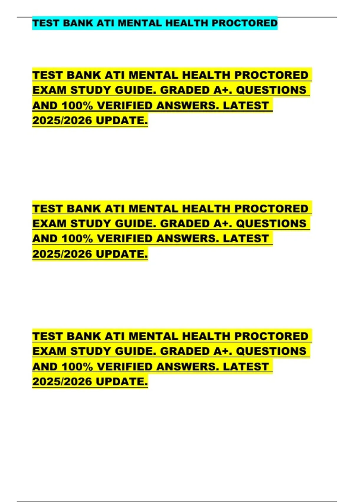 TEST BANK ATI MENTAL HEALTH PROCTORED