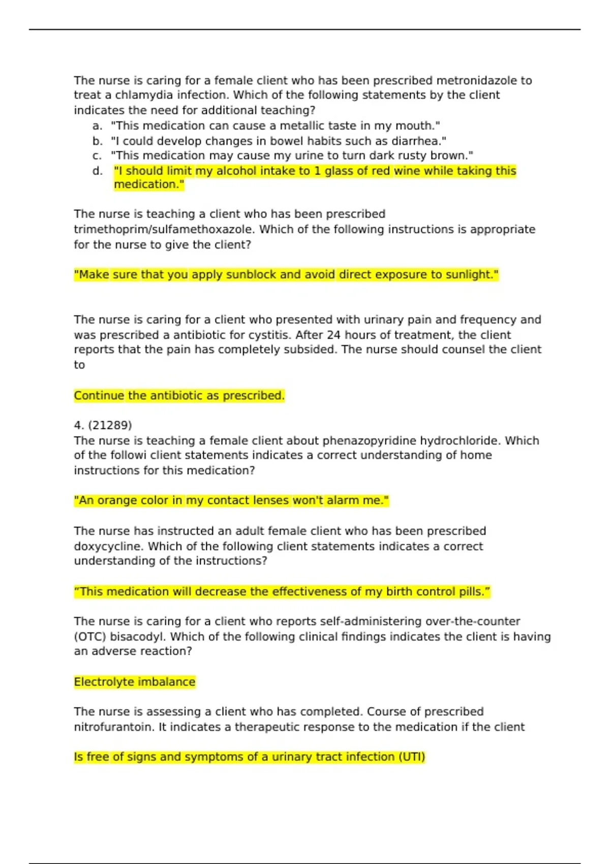 was prescribed a antibiotic for cystitis. After 24 hours of treatment, the client