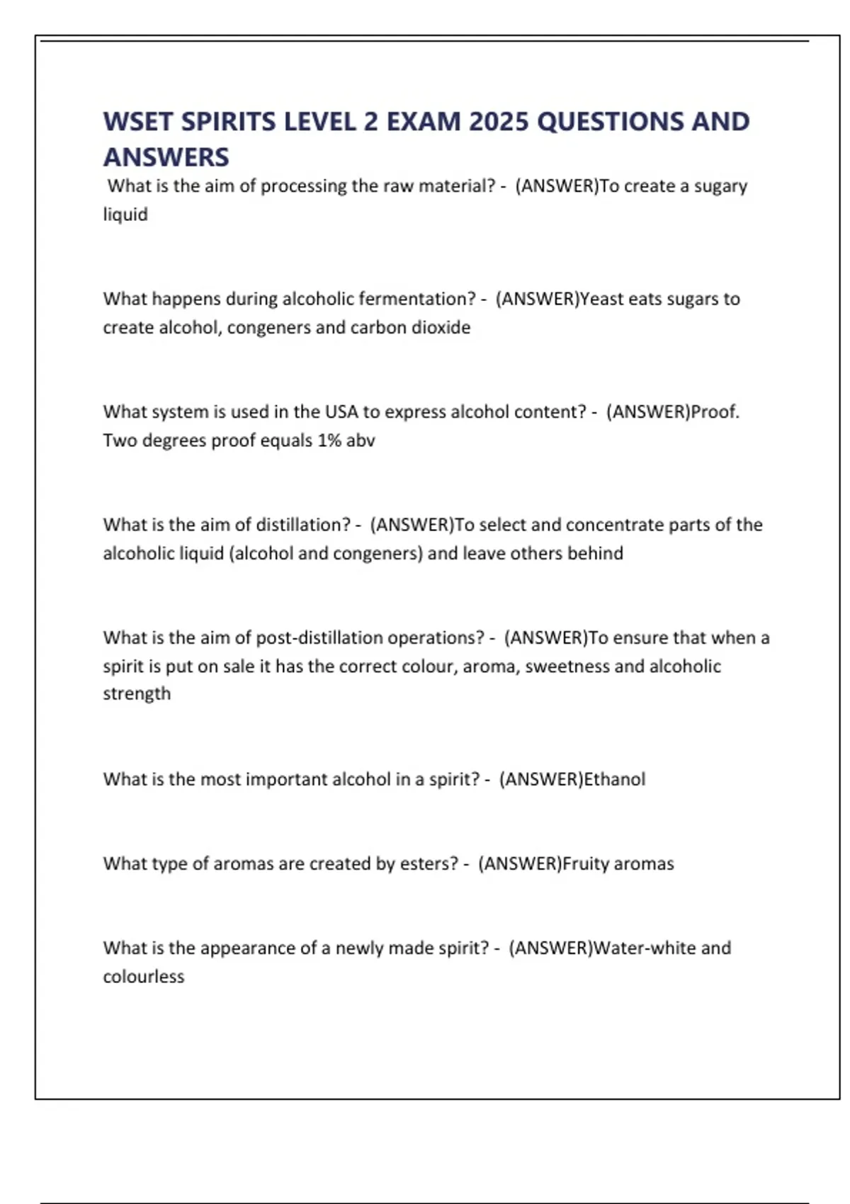 WSET SPIRITS LEVEL 2 EXAM 2025 QUESTIONS AND