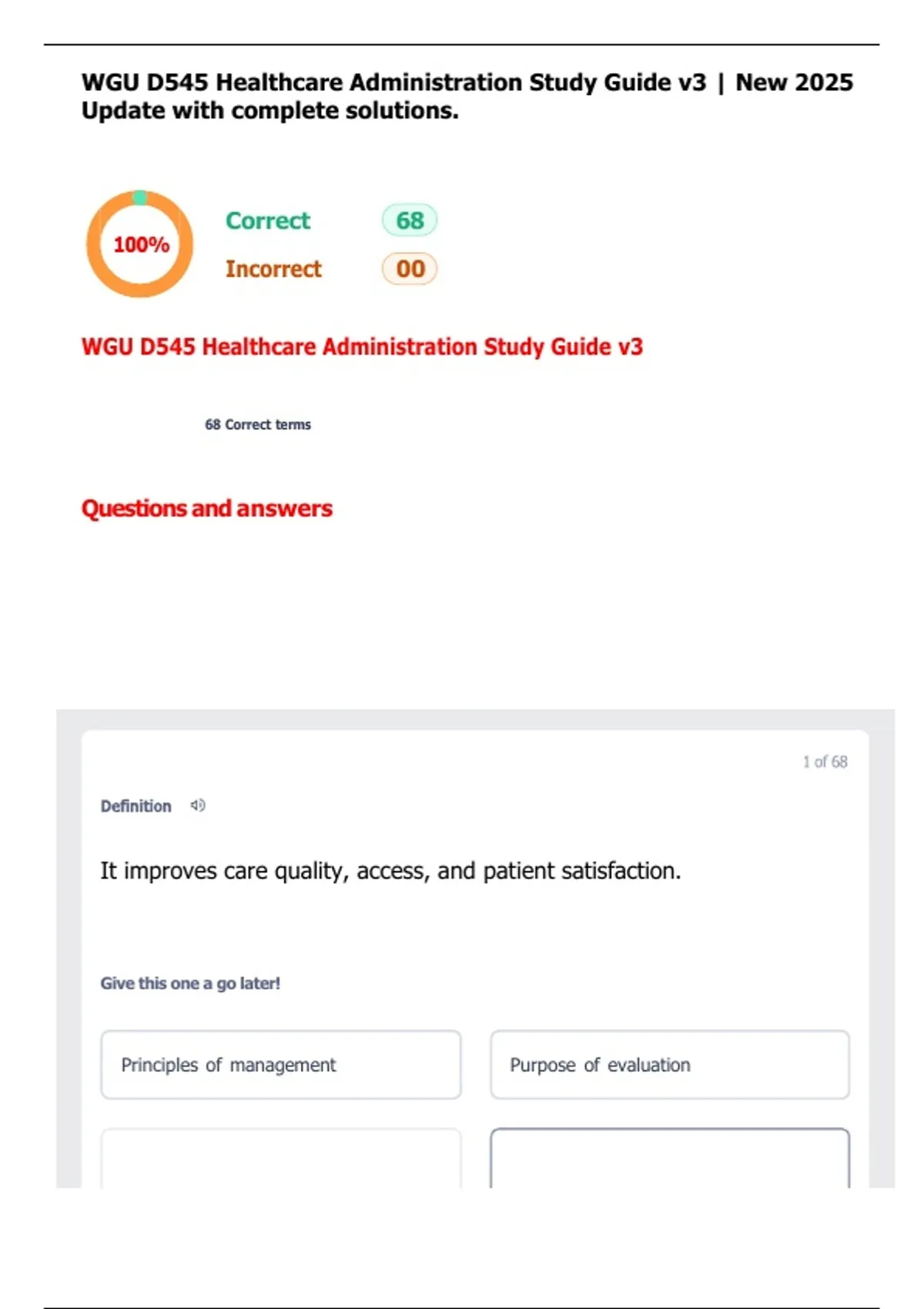 WGU D545 Healthcare Administration Study Guide v3 | New 2025 Update with complete solutions.