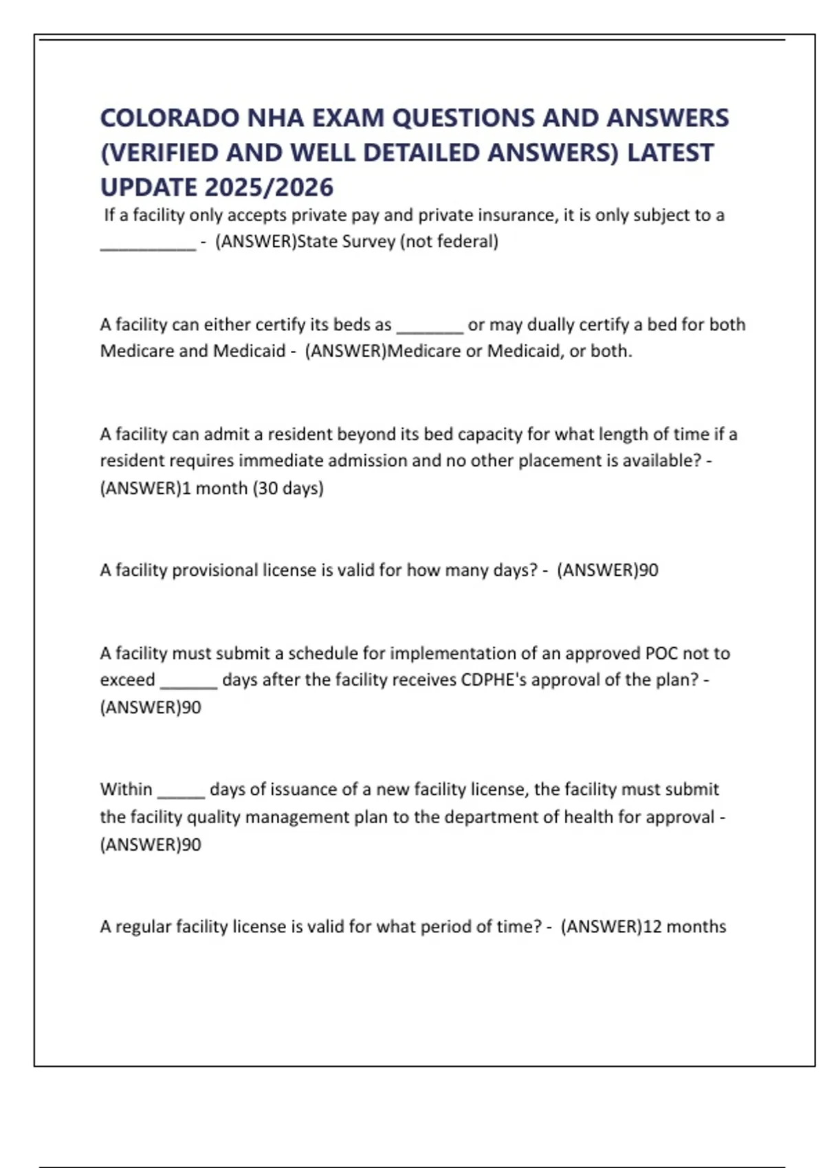 COLORADO NHA EXAM QUESTIONS AND ANSWERS