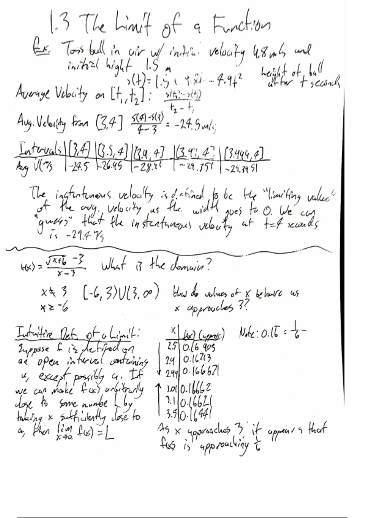 Class notes APPM 1350 1.3 The Limit of a Function.