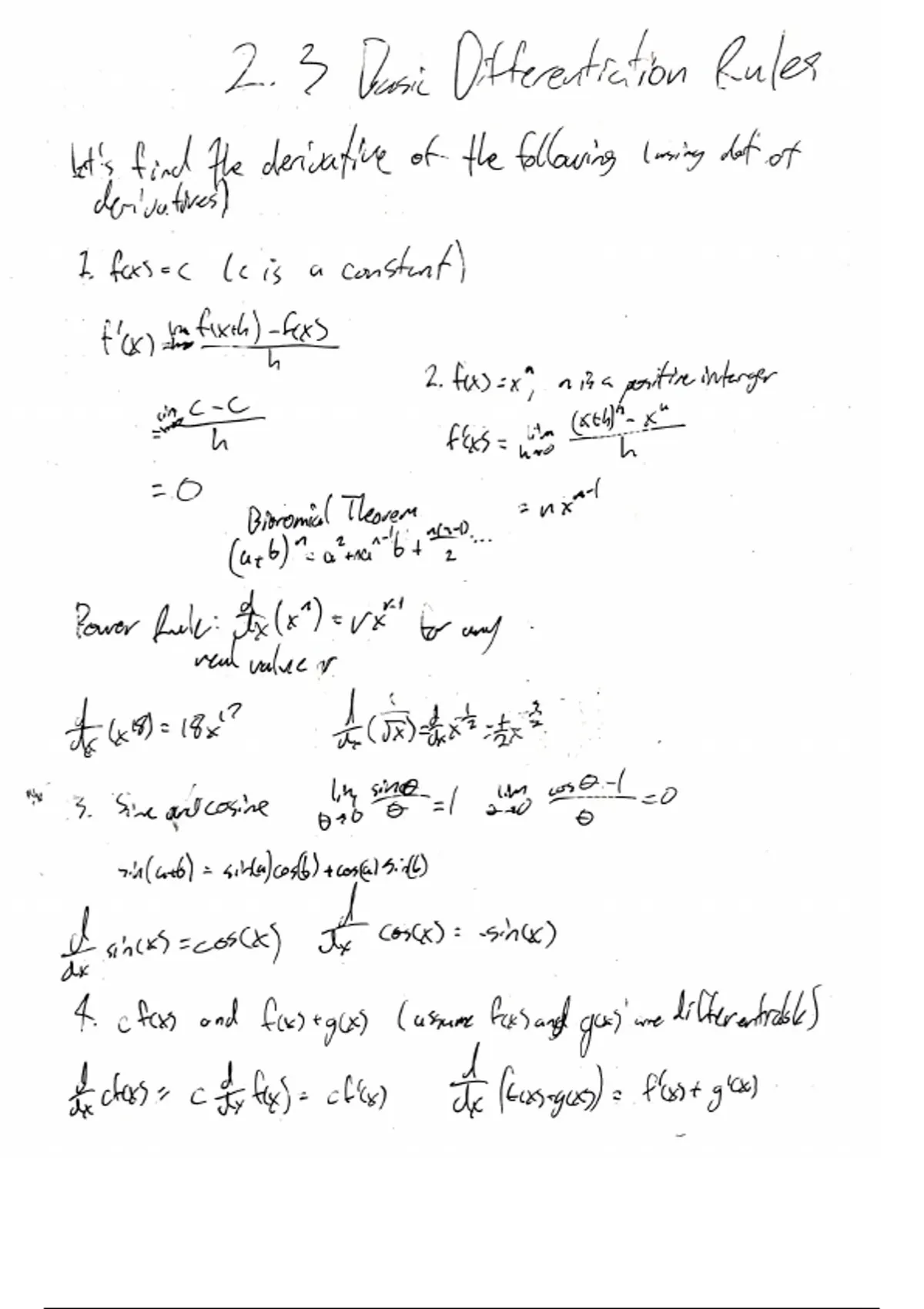 2.3 Dassic Differentiation Rules