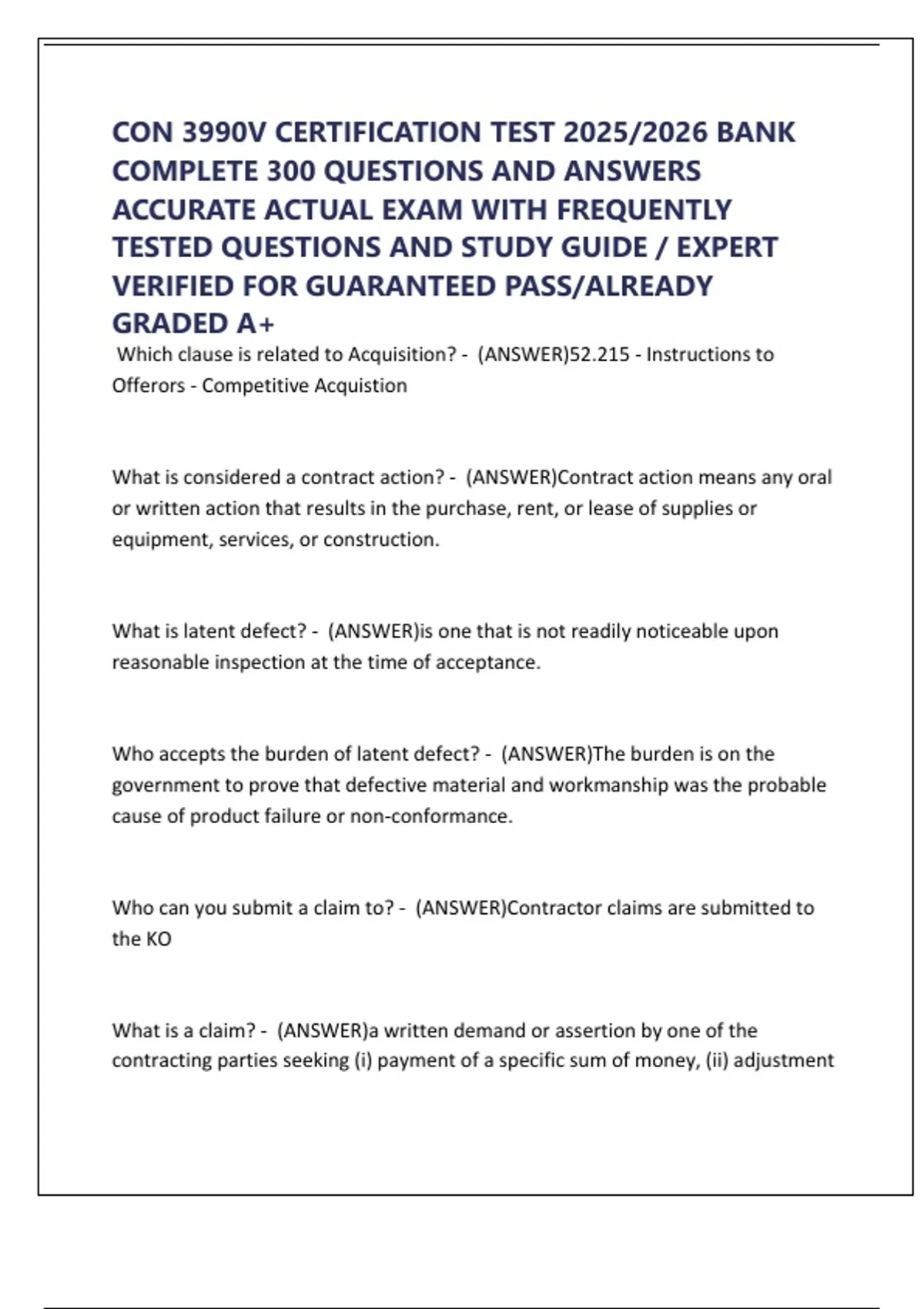CON 3990V CERTIFICATION TEST 2025/2026 BANK