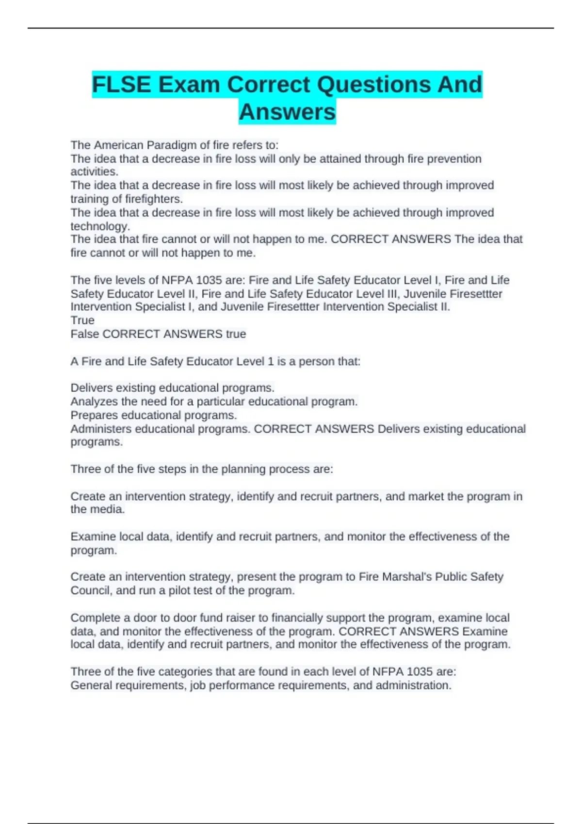 FLSE Exam Correct Questions And