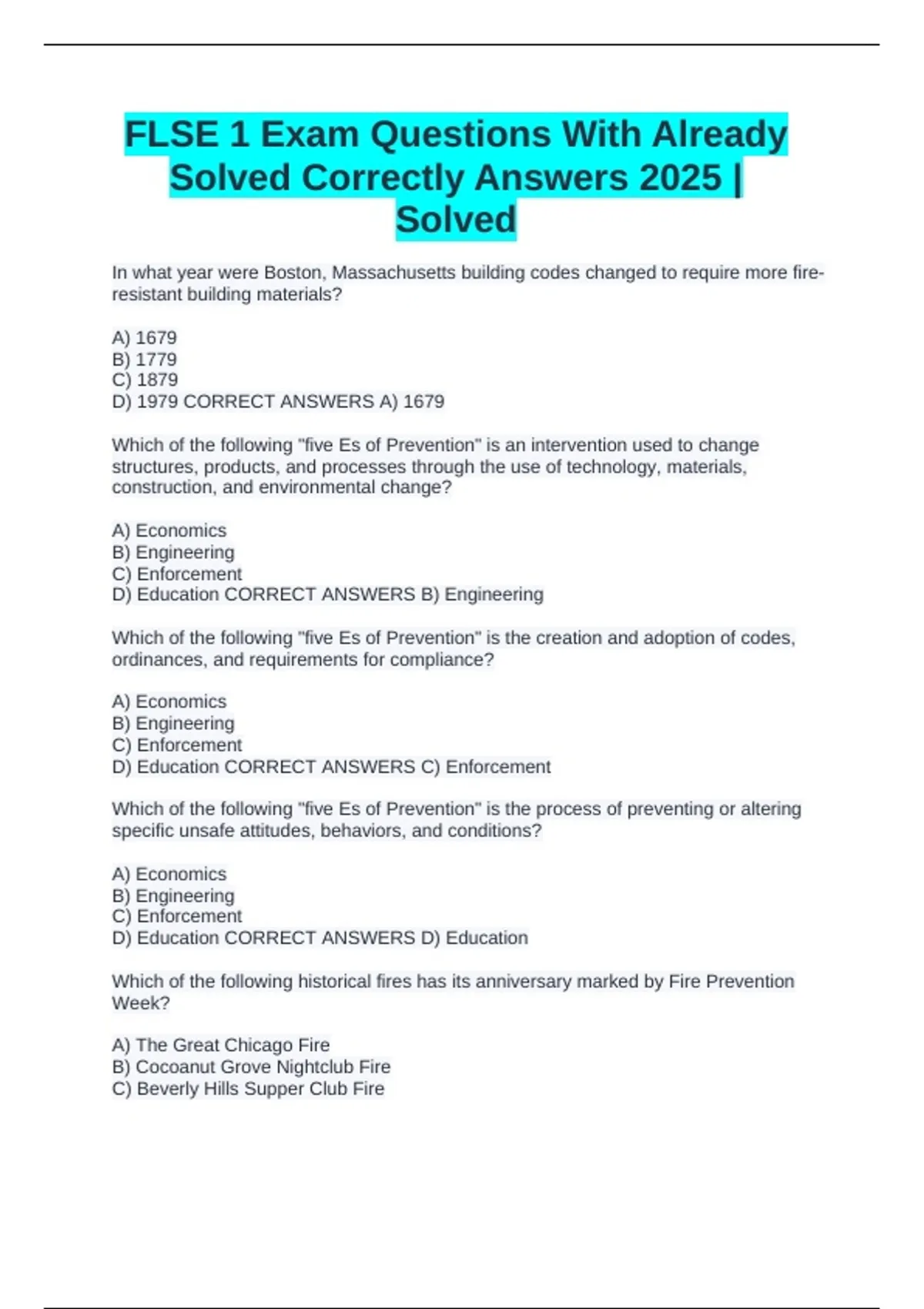 FLSE 1 Exam Questions With Already