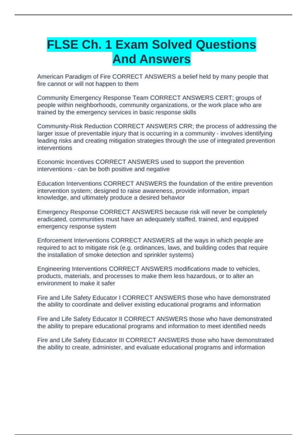 FLSE Ch. 1 Exam Solved Questions