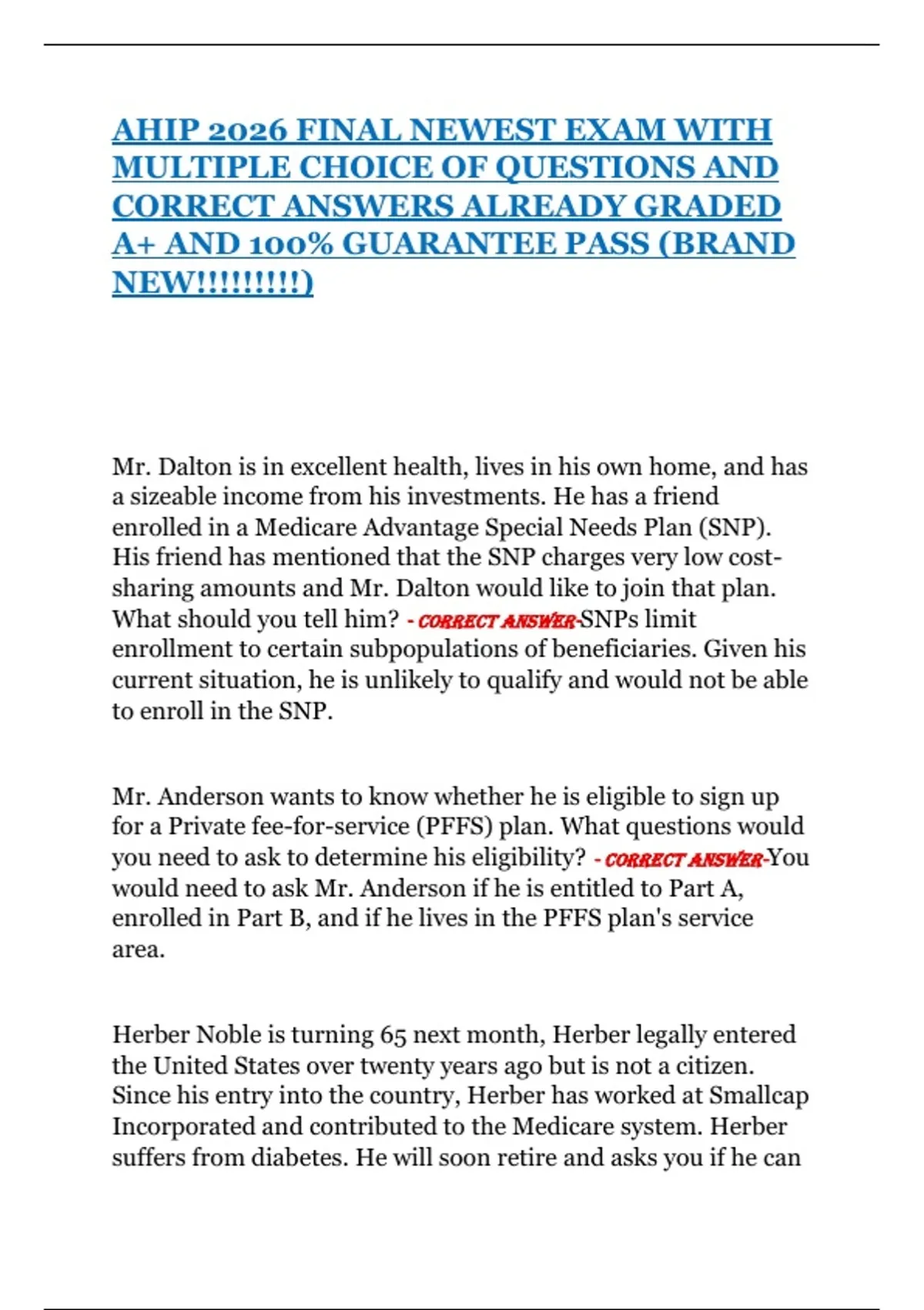 AHIP 2026 FINAL NEWEST EXAM WITH MULTIPLE CHOICE OF QUESTIONS AND CORRECT ANSWERS ALREADY GRADED A+ AND 100% GUARANTEE PASS (BRAND NEW!!!!!!!!!)