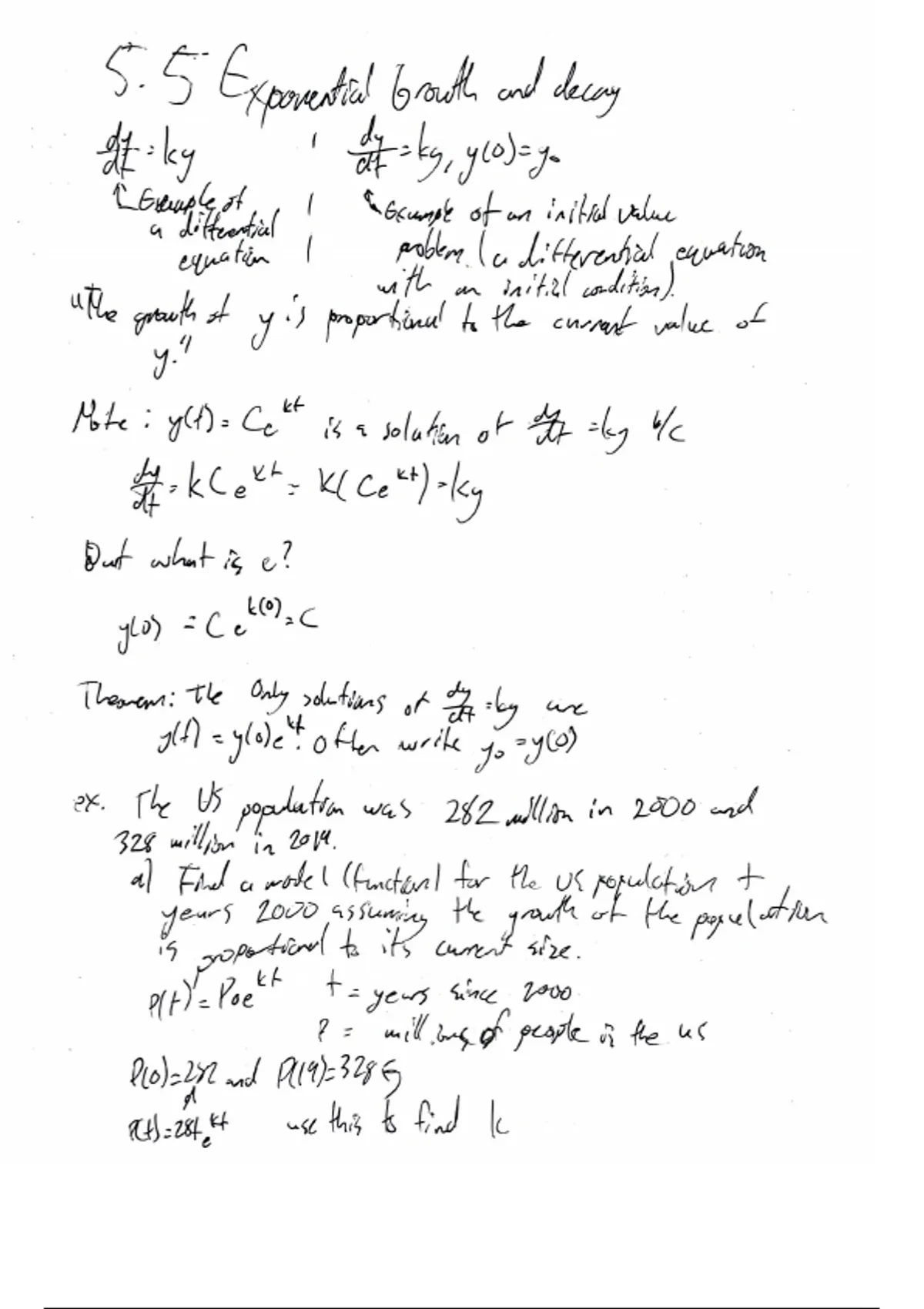 Class notes APPM 1350 Unit 5.5 Exponential Growth and Decay