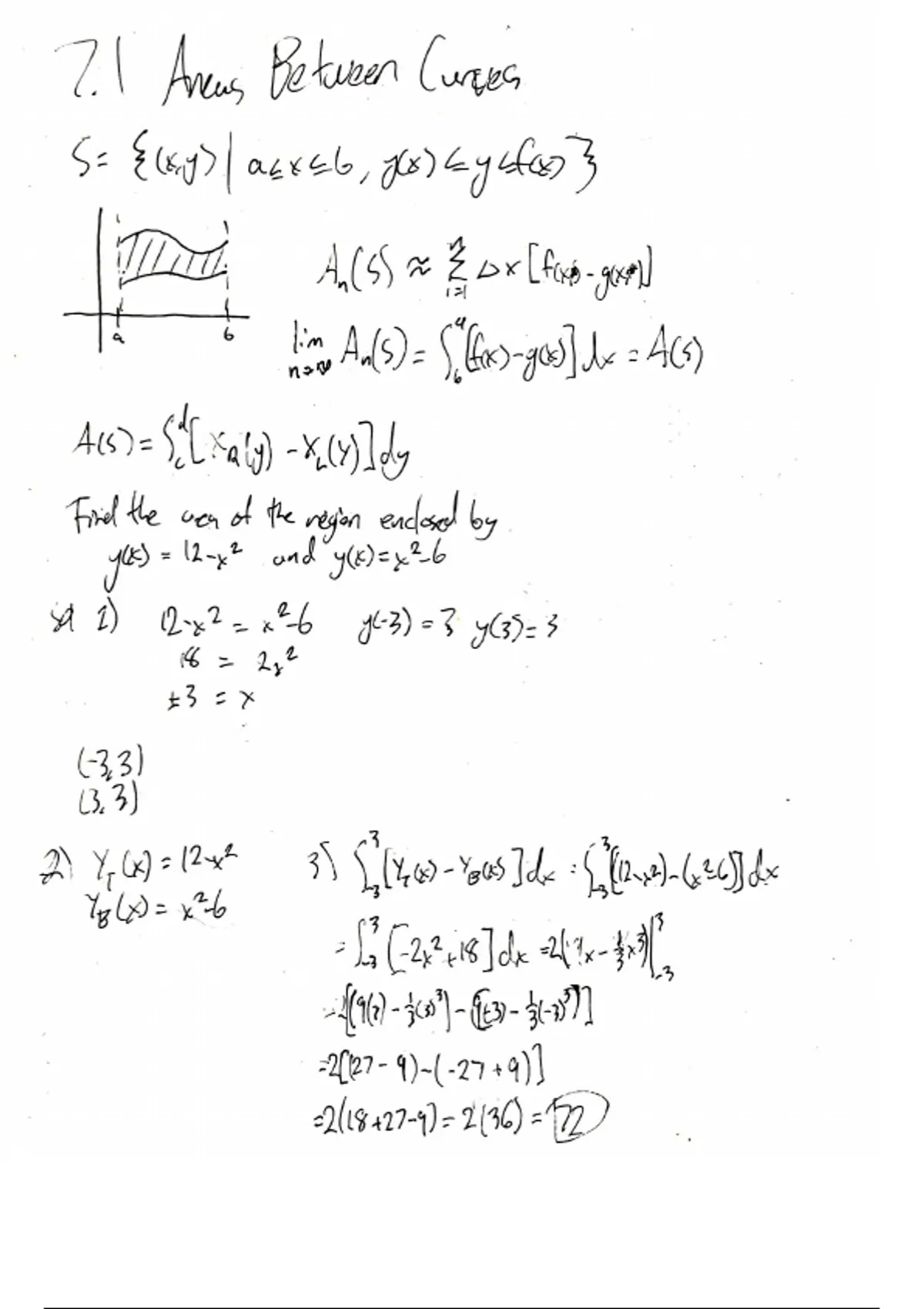 Class notes APPM 1360 Unit 7.1 Area Between Curves