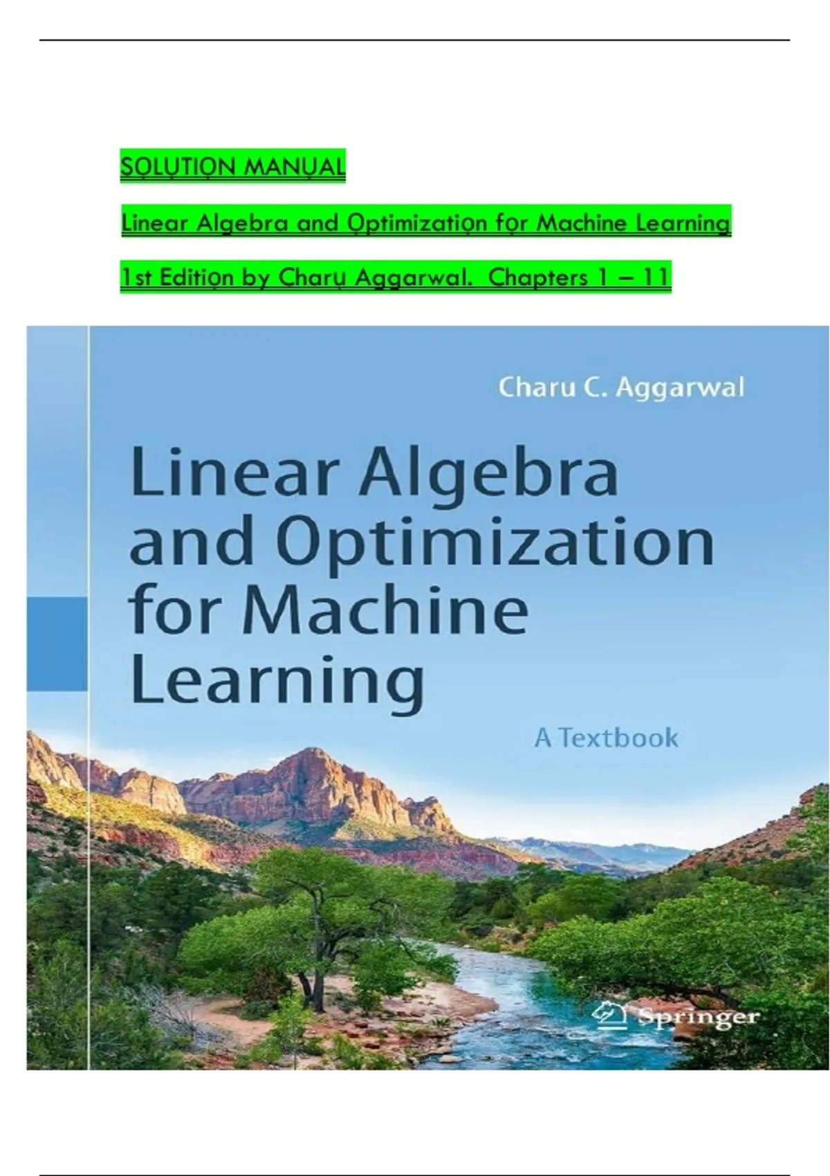Solution Manual for Linear Algebra and Optimization for Machine Learning 1st Edition by Charu Aggarwal, All 1-11 Chapters Fully Covered,[Guaranteed Pass] Verified Latest 2025 Edition.