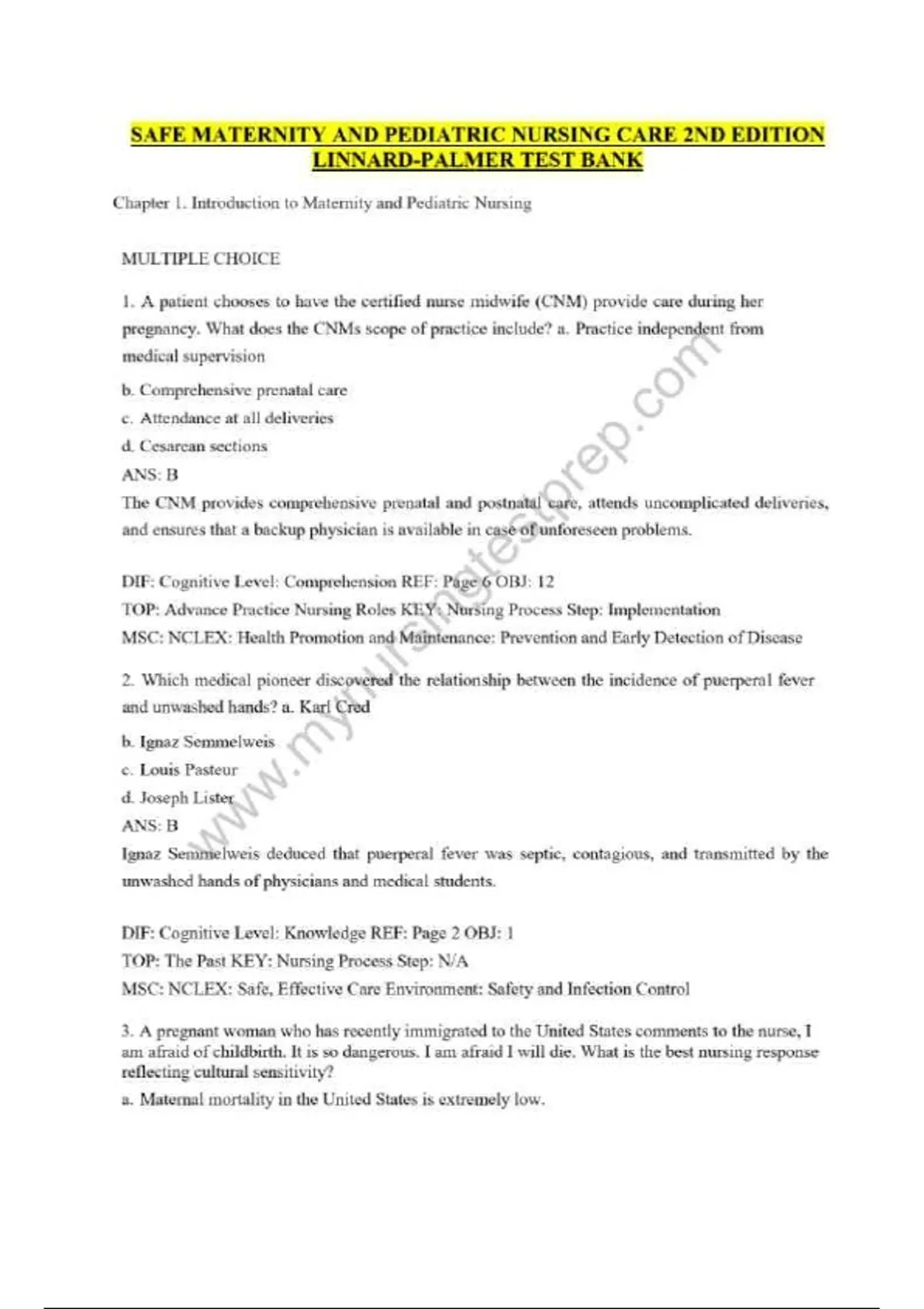 SAFE MATERNITY AND PEDIATRIC NURSING CARE 2ND EDITION LINNARD-PALMER TEST BANKSAFE MATERNITY AND PEDIATRIC NURSING CARE 2ND EDITION LINNARD-PALMER TEST BANK