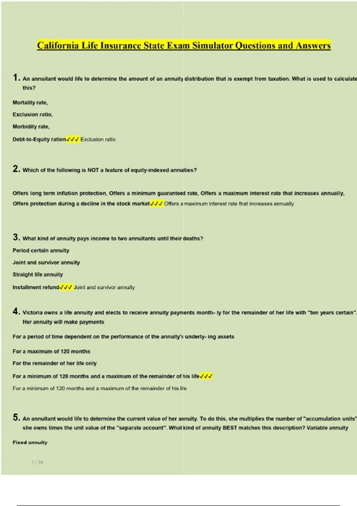 California Life Insurance State Exam Simulator Questions and Answers
