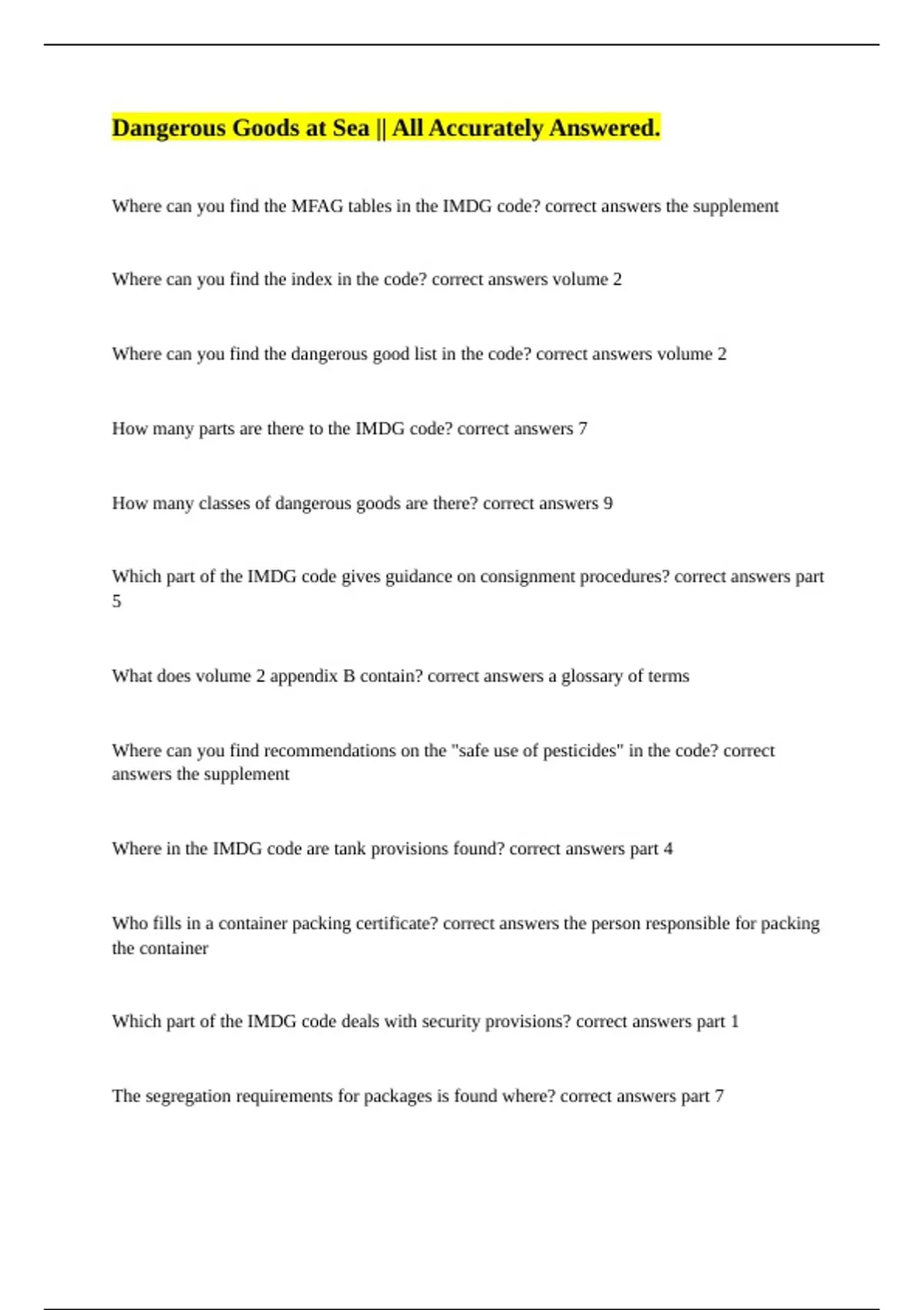 Dangerous Goods at Sea || All Accurately Answered.