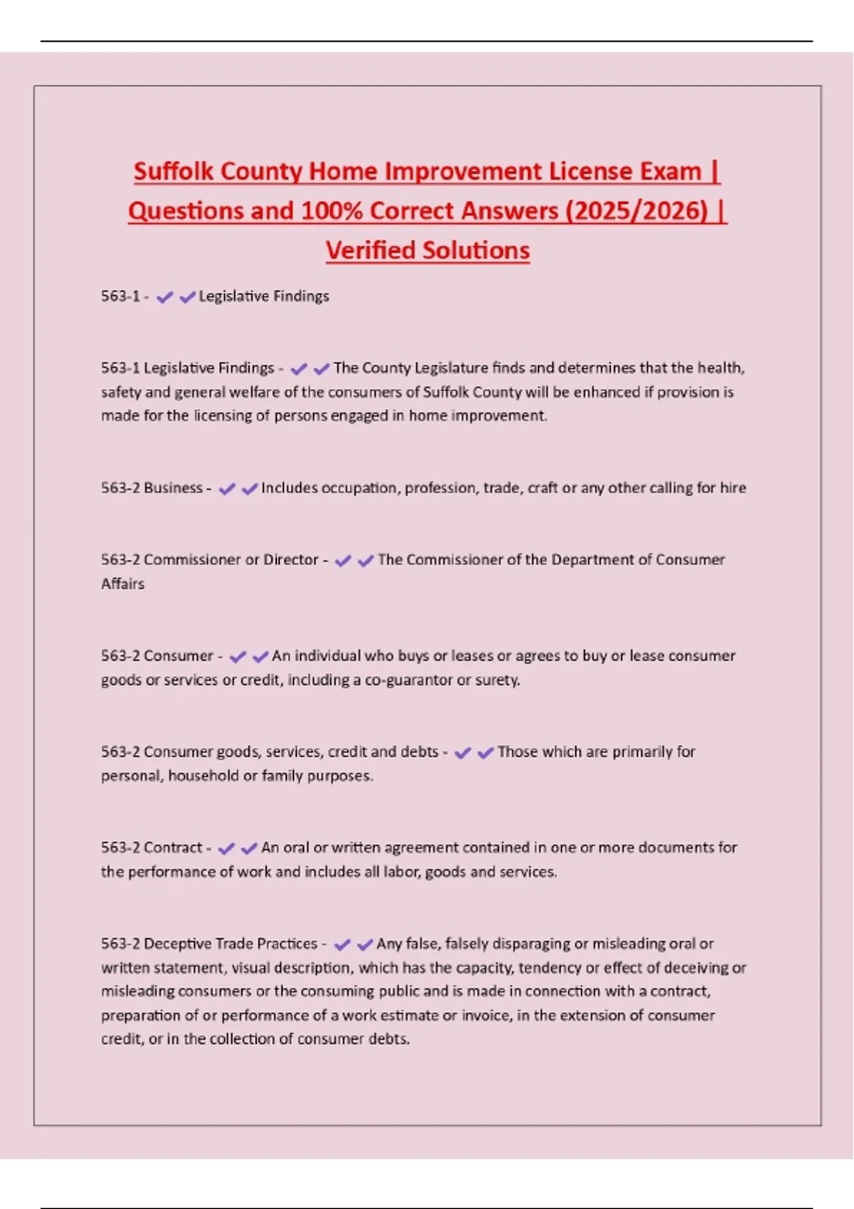 Suffolk County Home Improvement License Exam | Questions and 100% Correct Answers (2025/2026) | Verified Solutions