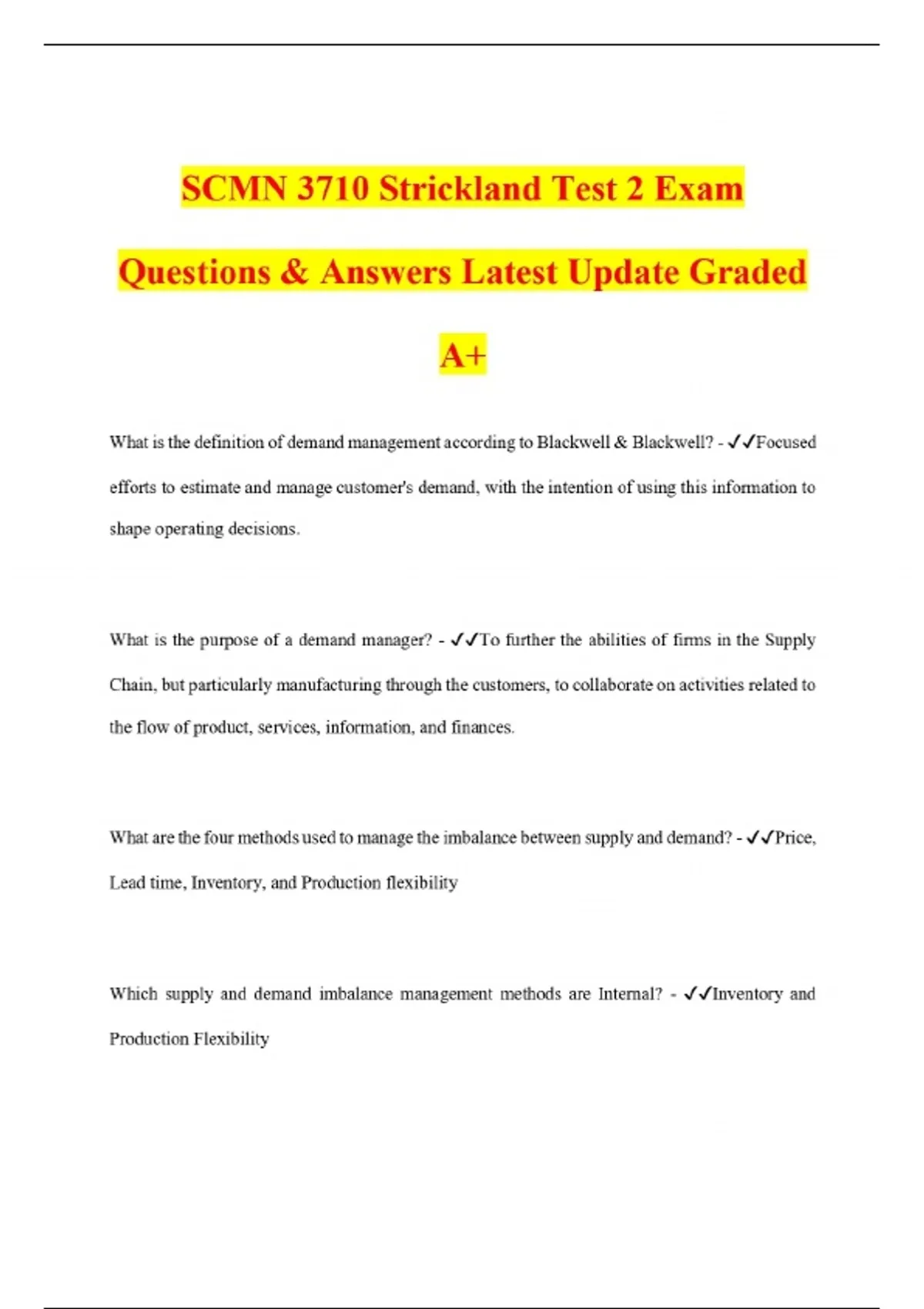 SCMN 3710 Strickland Test 2 Exam Questions & Answers Latest Update Graded A+