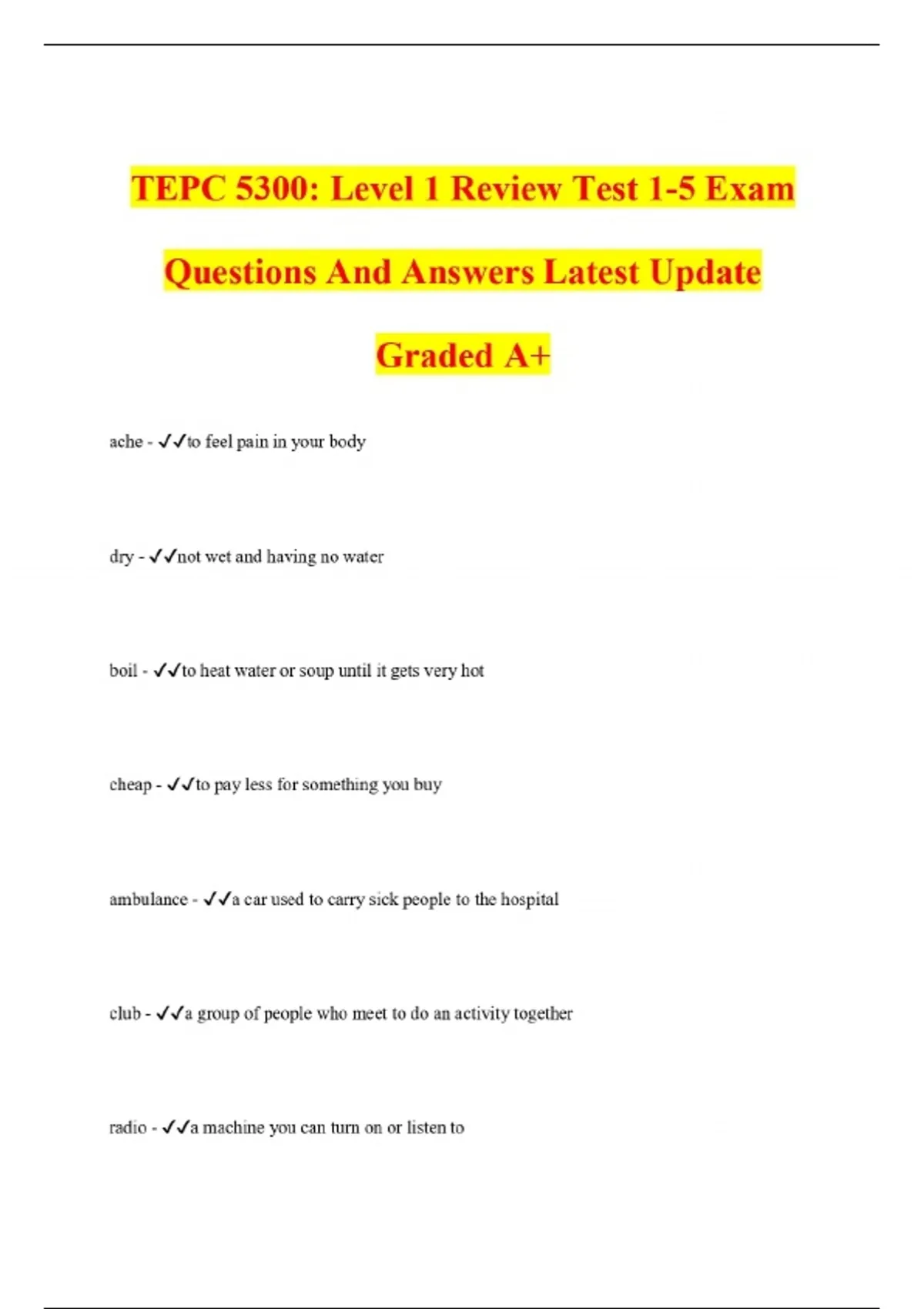 TEPC 5300: Level 1 Review Test 1-5 Exam Questions And Answers Latest Update Graded A+
