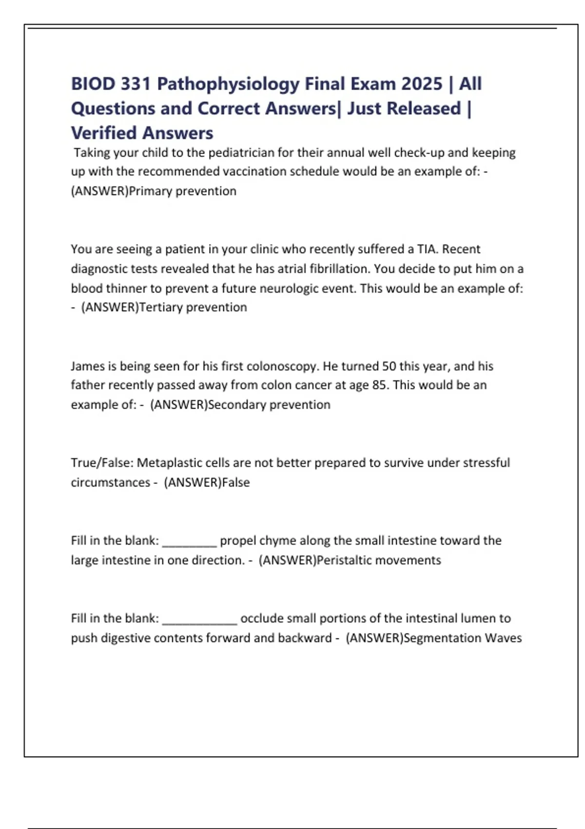BIOD 331 Pathophysiology Final Exam 2025 | All