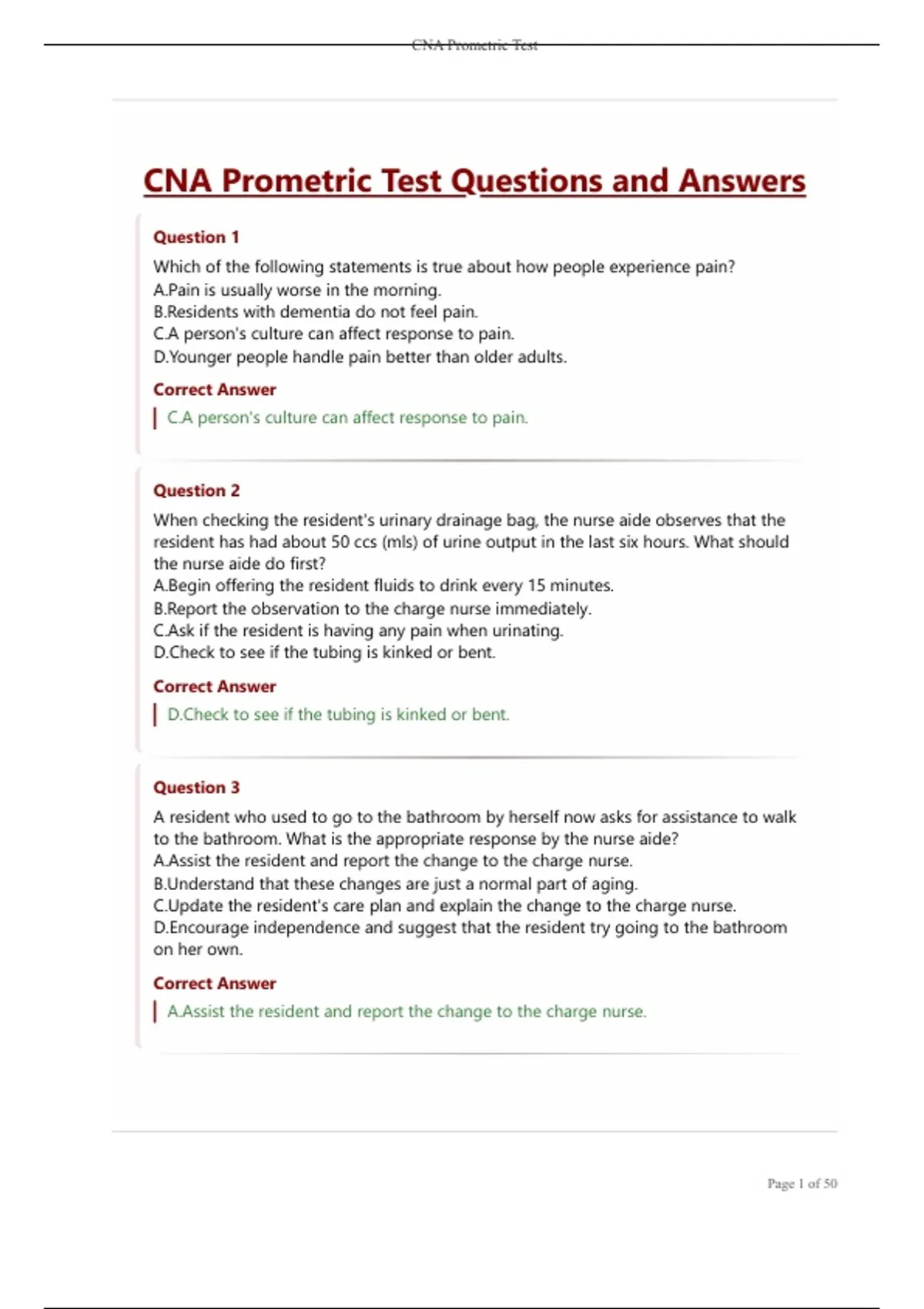 CNA Prometric| Test |Questions and Answers