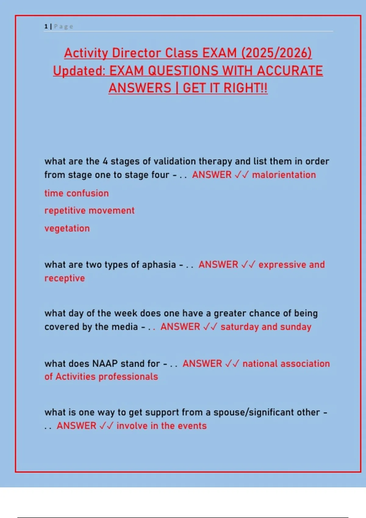 Activity Director Class EXAM (2025/2026)