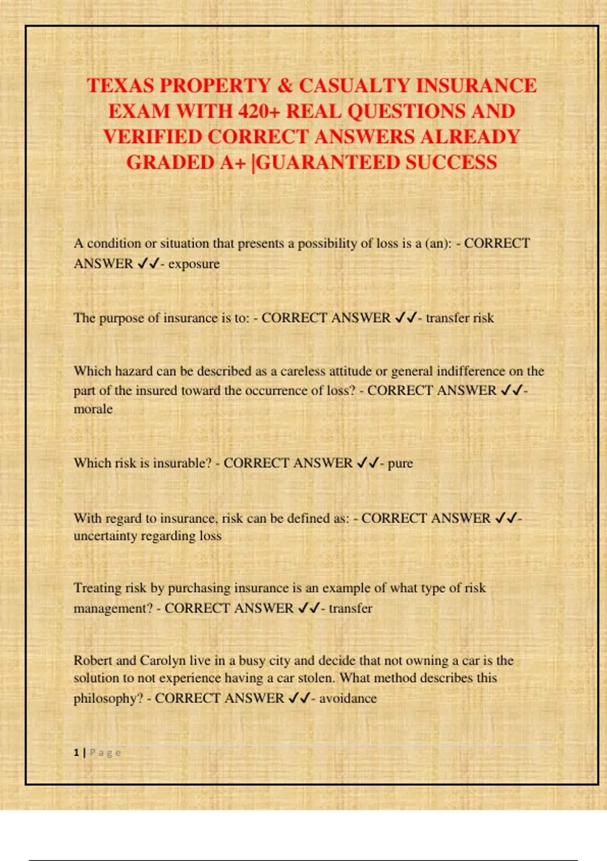 Which risk is insurable? - CORRECT ANSWER ✔✔- pure