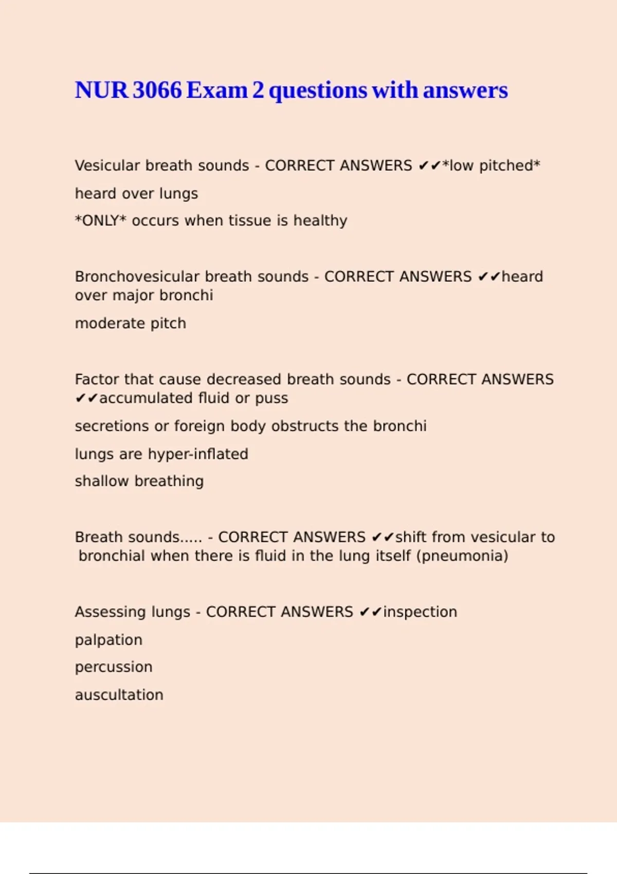Breath sounds..... - CORRECT ANSWERS ✔✔shift from vesicular to