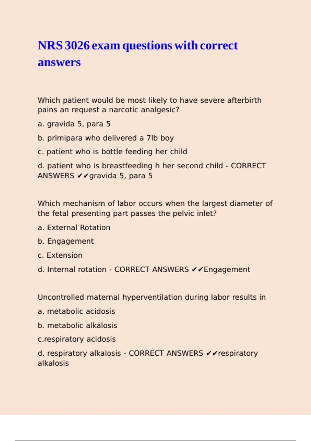 NRS 3026 exam questions with correct