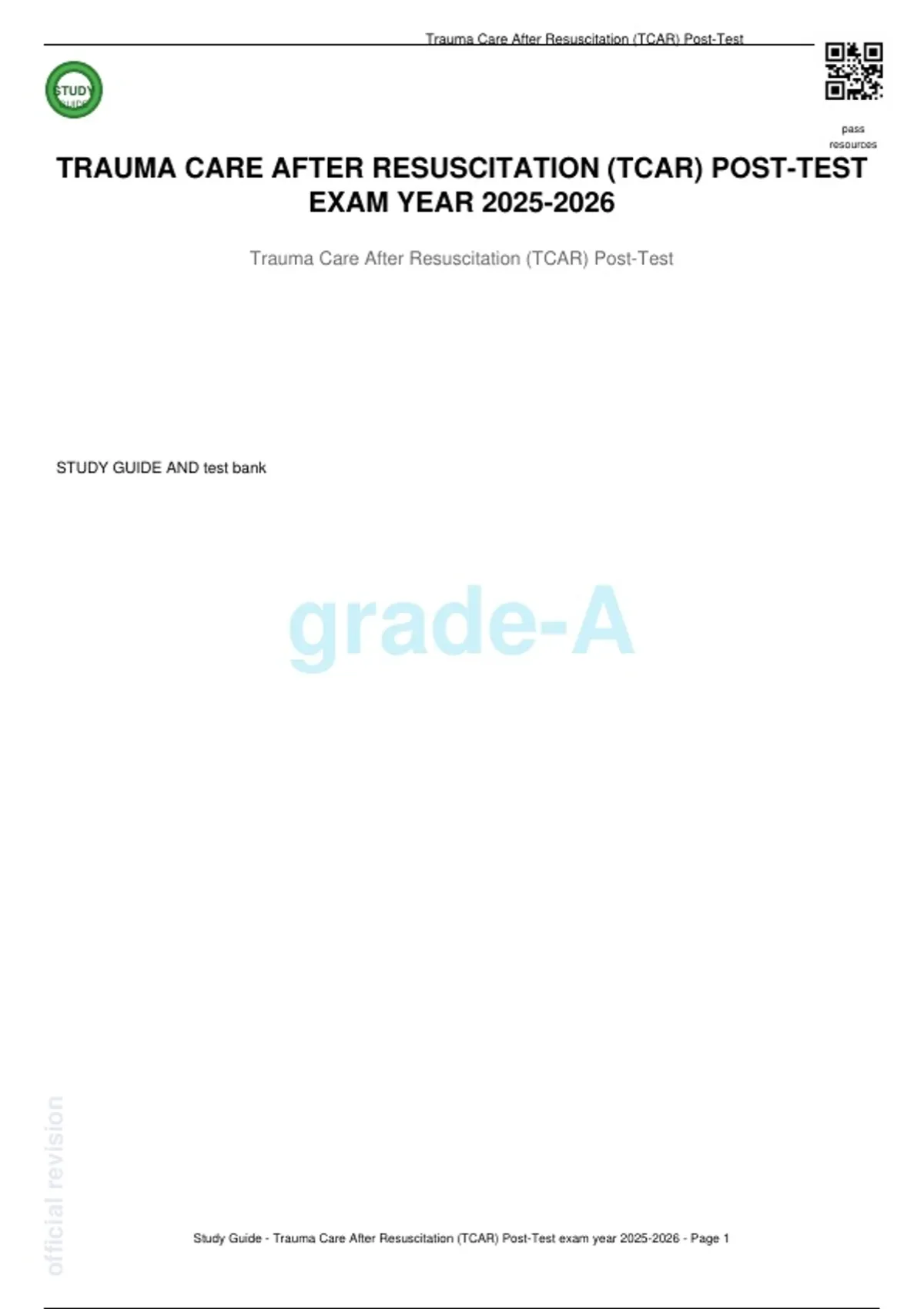 Study Guide - Trauma Care After Resuscitation (TCAR) Post-Test exam year 2025-2026 - Page 1
