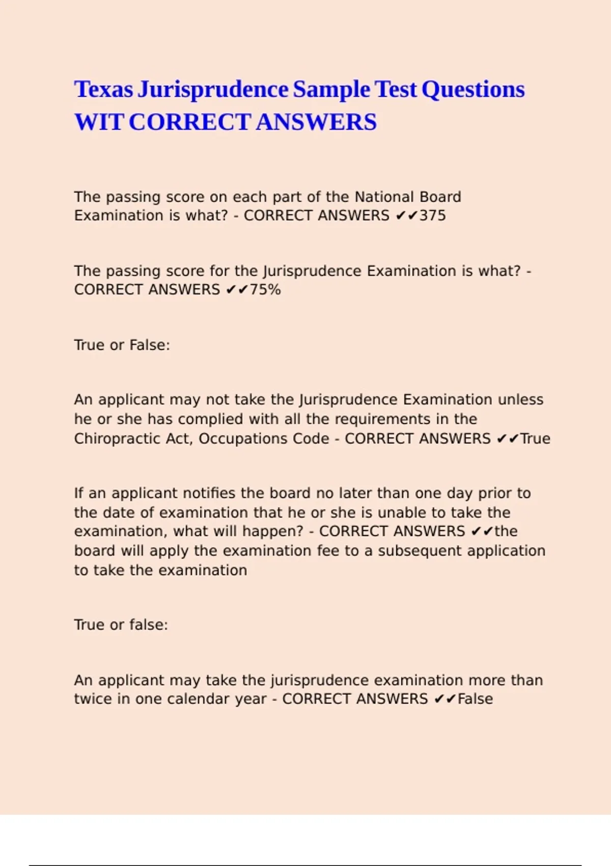 Texas Jurisprudence Sample Test Questions WIT CORRECT ANSWERS