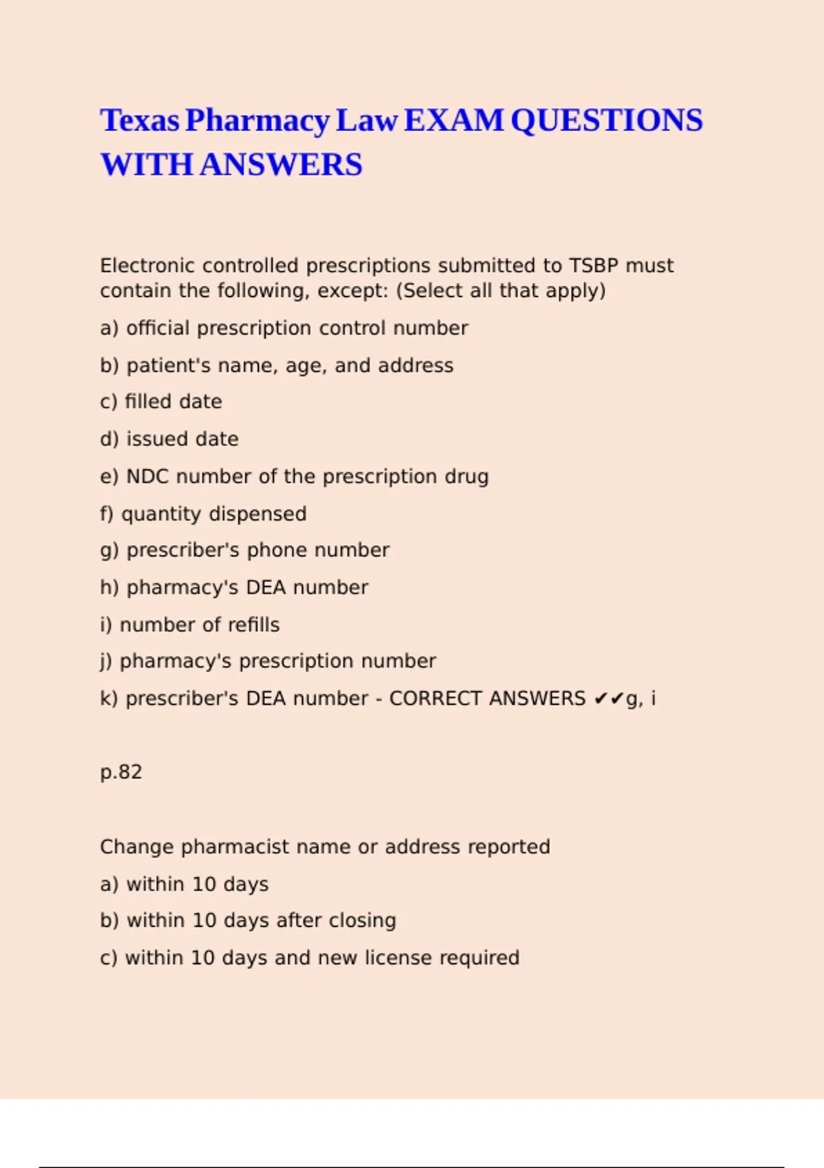 k) prescriber's DEA number - CORRECT ANSWERS ✔✔g, i