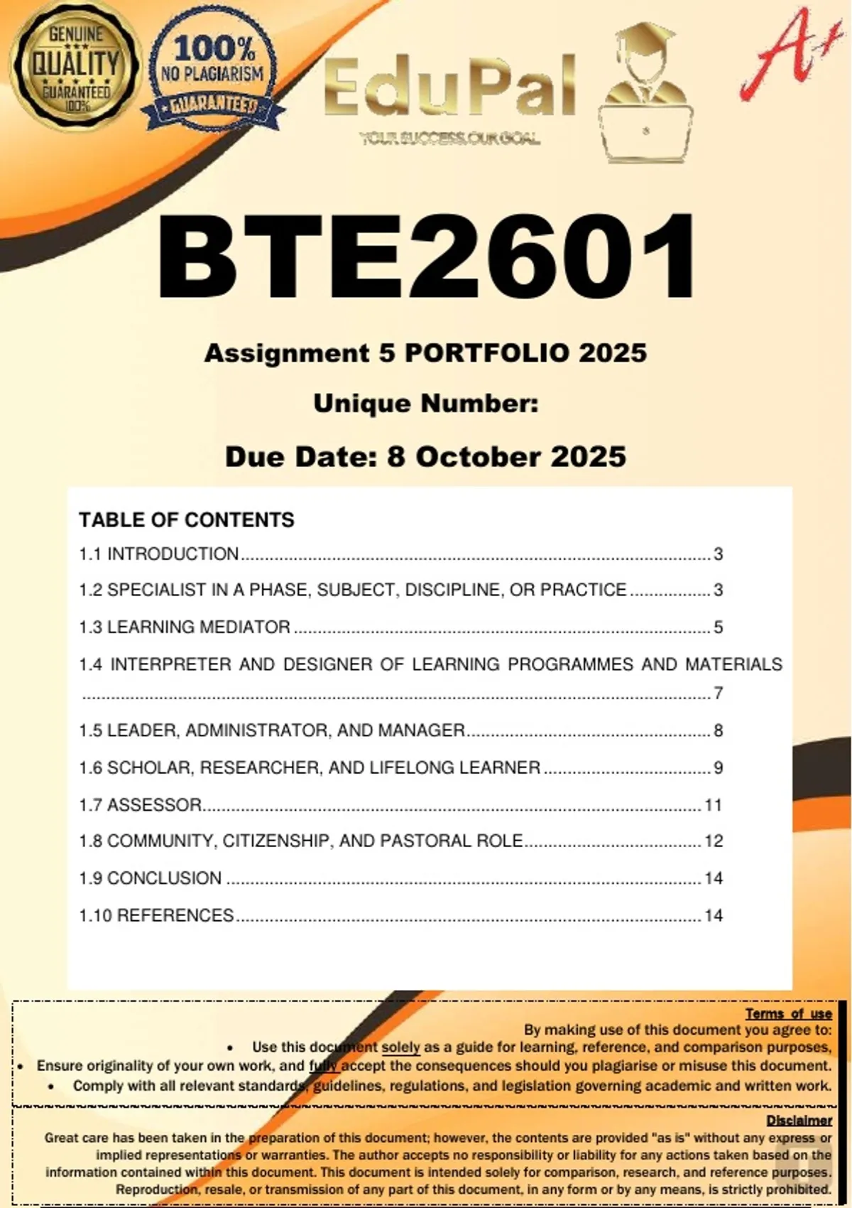 Ensure originality of your own work, and fully accept the consequences should you plagiarise or misuse this document.