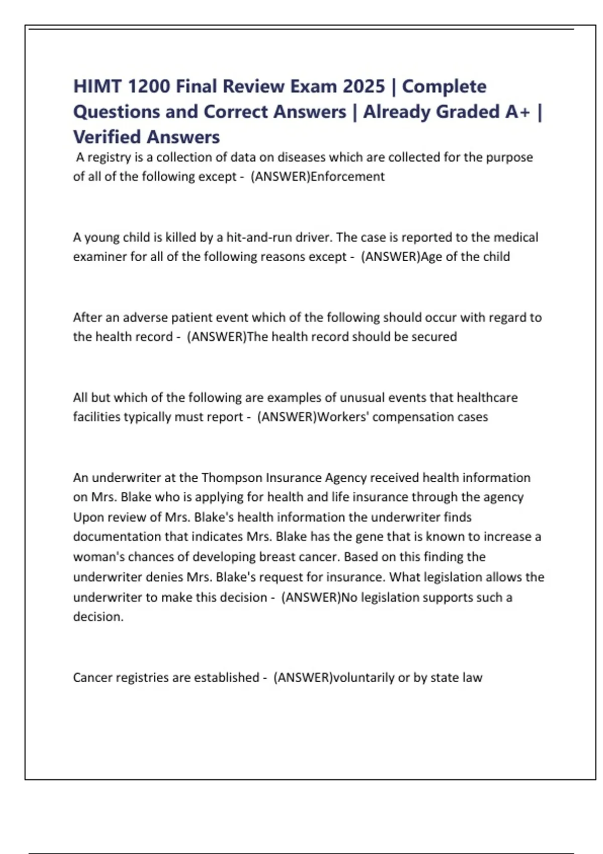 HIMT 1200 Final Review Exam 2025 | Complete Questions and Correct Answers | Already Graded A+ | Verified Answers