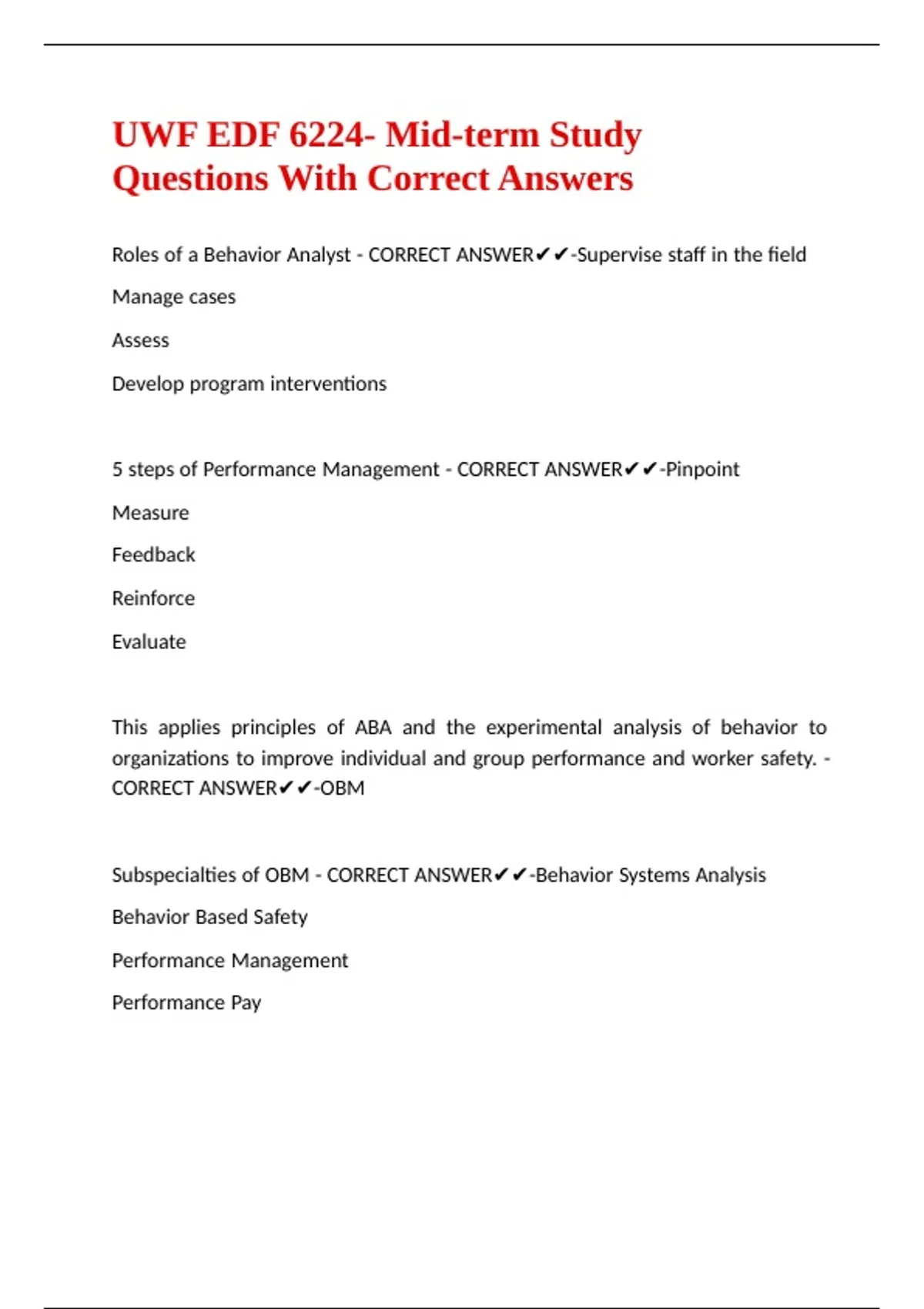 UWF EDF 6224- Mid-term Study Questions With Correct Answers.