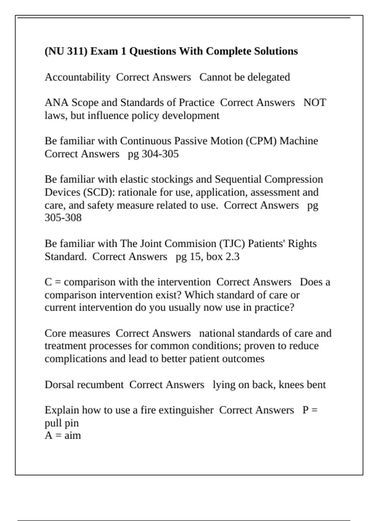 care, and safety measure related to use. Correct Answers pg