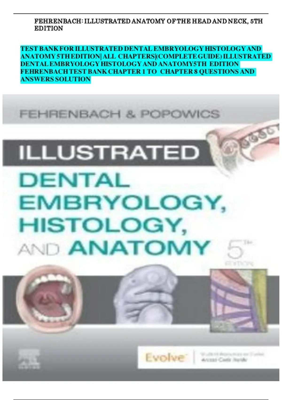 Test Bank For Illustrated Dental Embryology, Histology, and Anatomy 6th Edition ( Authors : Margaret J. Fehrenbach & Tracy Popowics) All Chapters | Latest Edition 2025