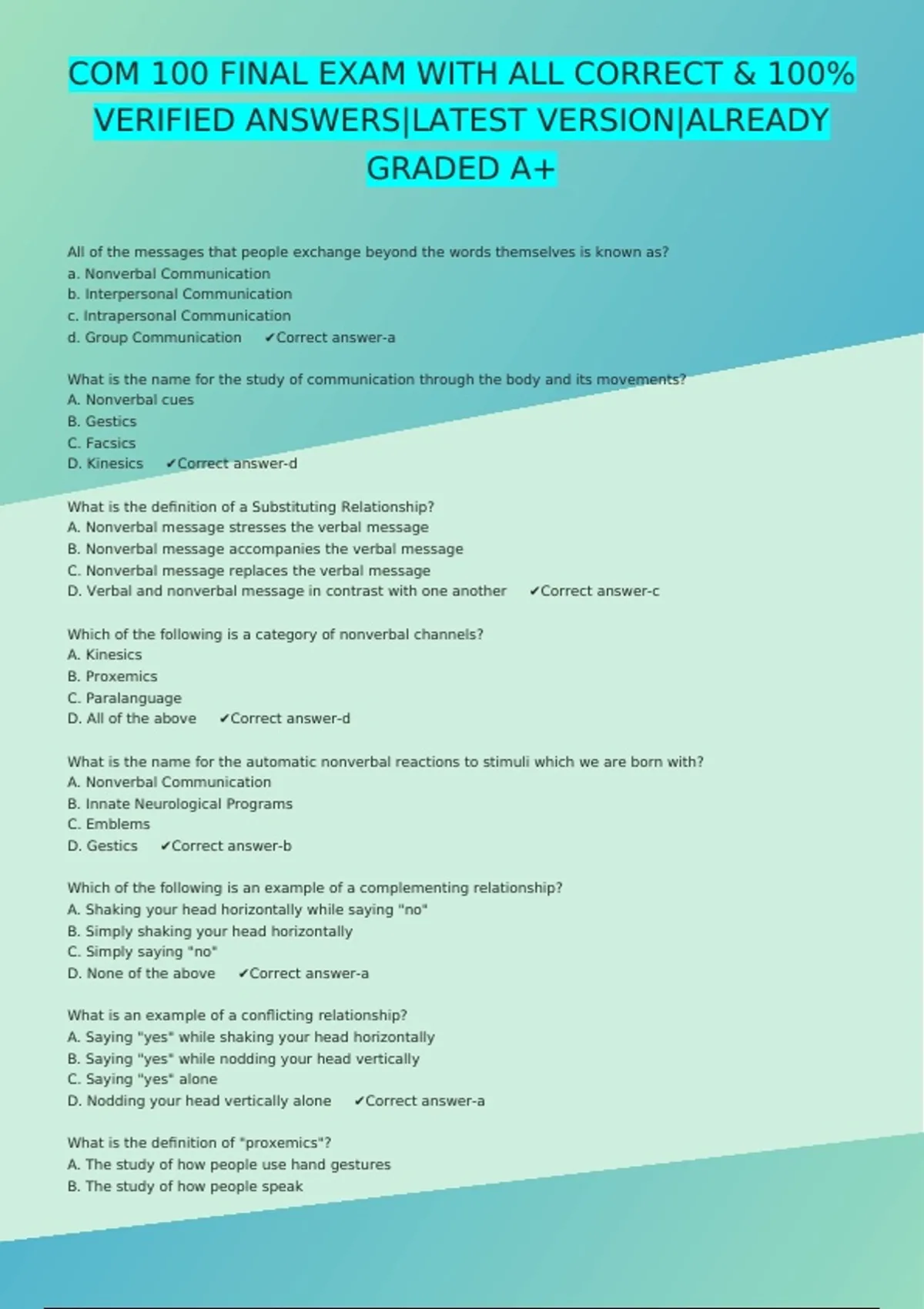 COM 100 FINAL EXAM WITH ALL CORRECT & 100% VERIFIED ANSWERS|LATEST VERSION|ALREADY GRADED A+