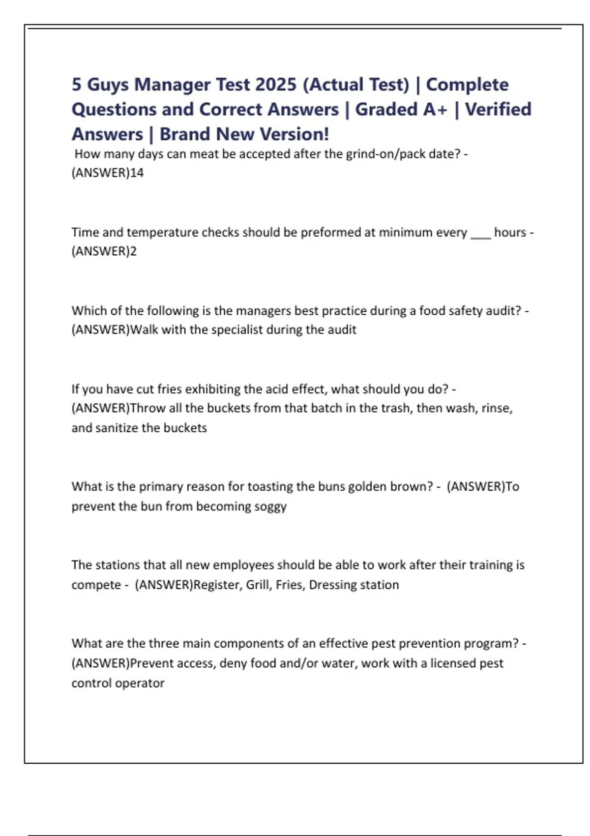 5 Guys Manager Test 2025 (Actual Test) | Complete