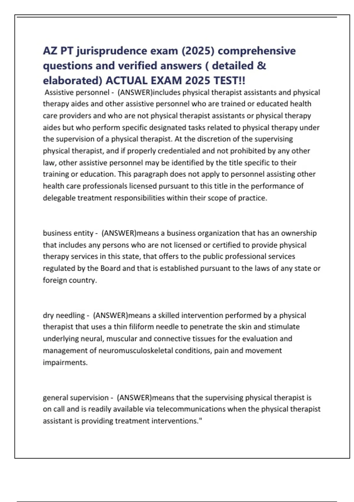 AZ PT jurisprudence exam (2025) comprehensive