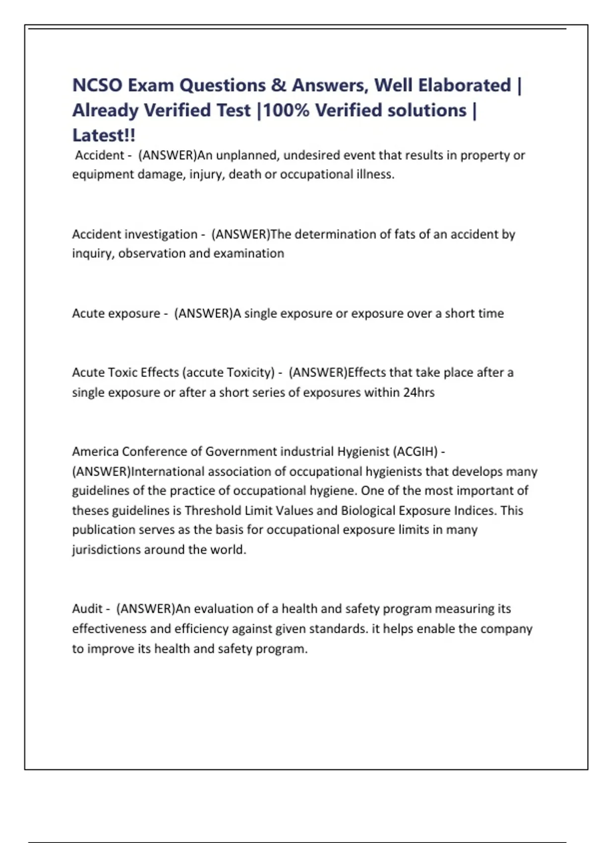 Audit - (ANSWER)An evaluation of a health and safety program measuring its